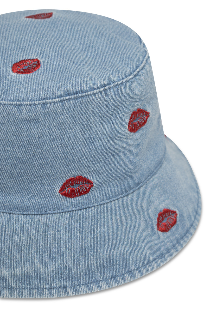 Der Damen Fischerhut überzeugt mit modernem Design und passt zu urbanen sowie entspannten Outfits. Eine dezente Lippen-Stickerei setzt einen femininen Akzent und verleiht dem Hut einen verspielten Charakter. Dank klassischer Form lässt sich das Modell vielseitig kombinieren und rundet Casual-Looks stilsicher ab.Lief.-Art-Nr: 61K0004