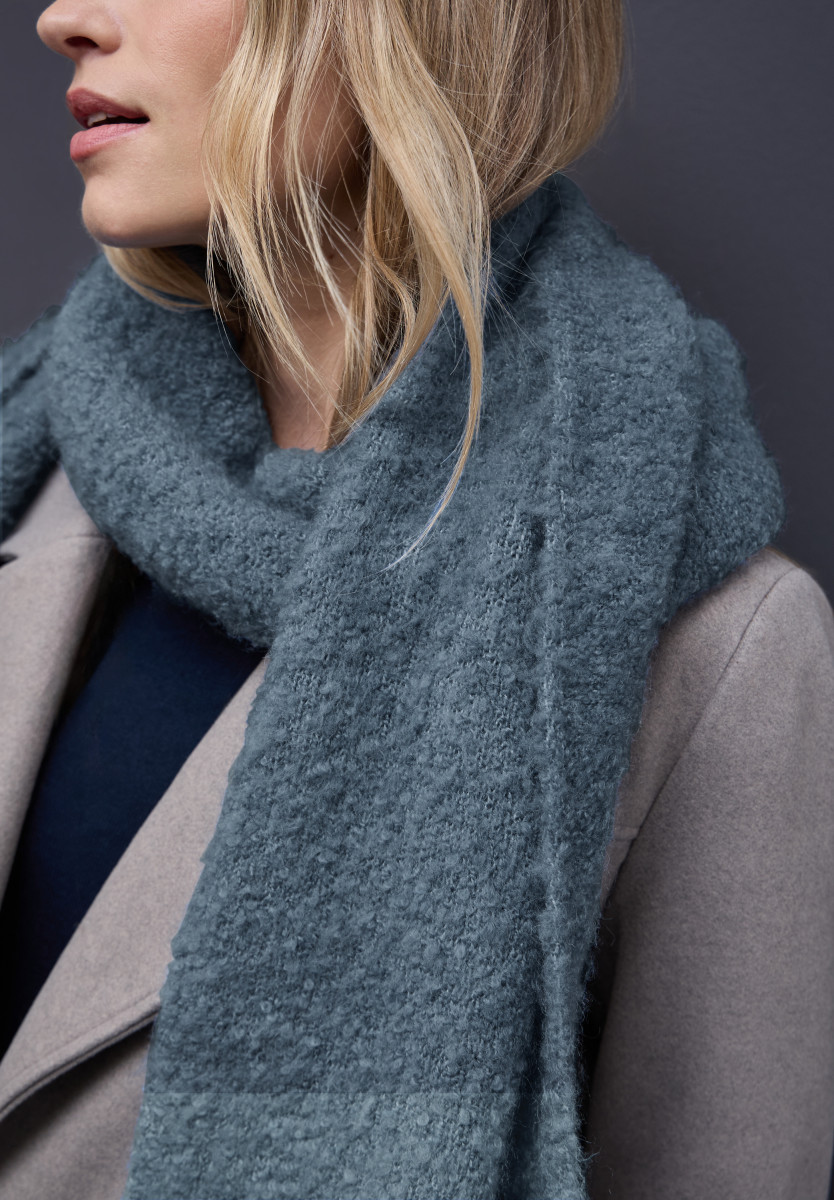 Der lange Schal in Bouclé-Struktur von Street One ist ein weiches und wärmendes Accessoire für Damen. Er bietet angenehmen Tragekomfort und lässt sich vielseitig zu Herbst- und Winteroutfits kombinieren. Das zeitlose Design macht den Schal zu einem modischen Begleiter an kühleren Tagen.Lief.-Art-Nr: A572855