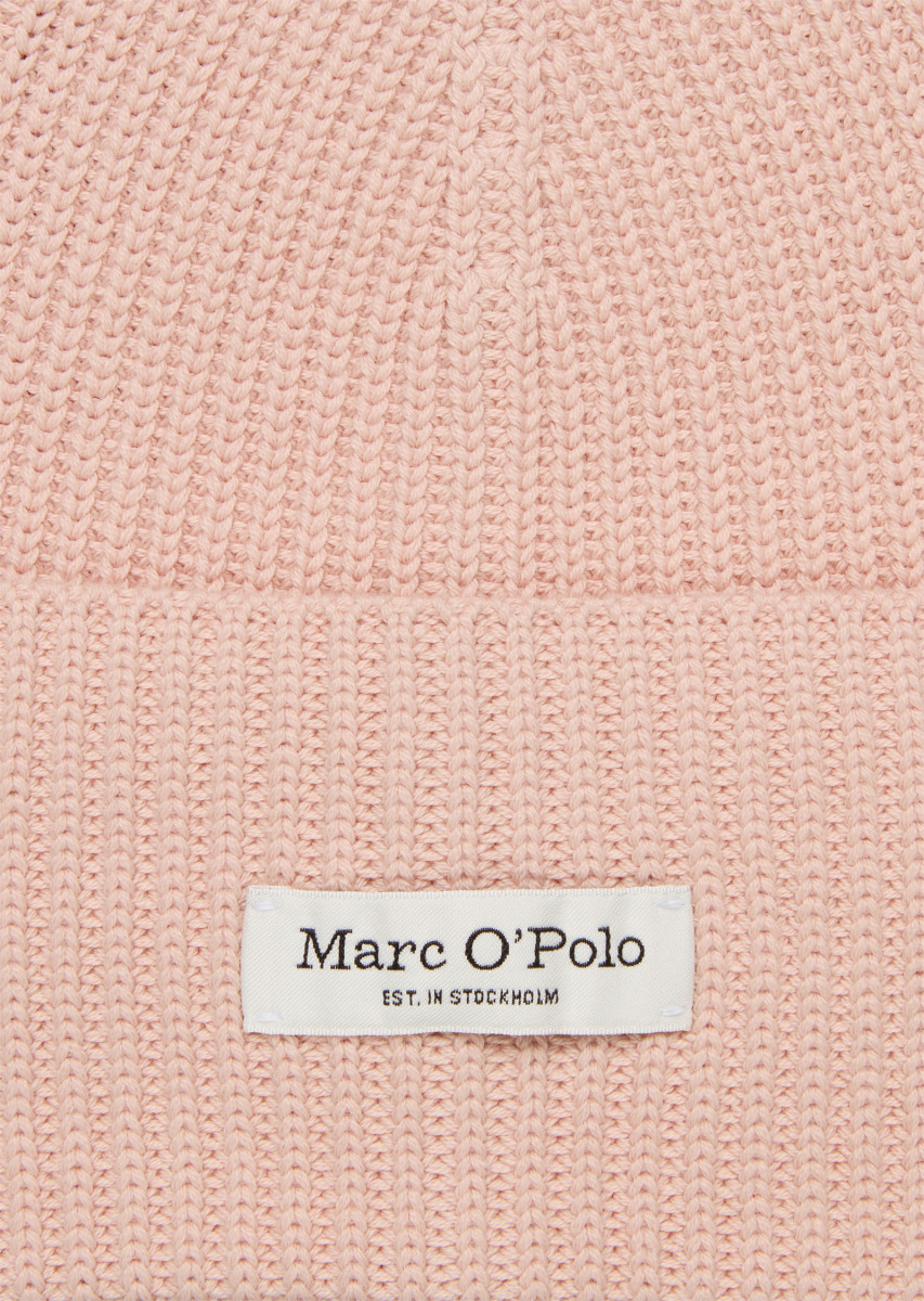Designed for Circularity. Beanie-Love! Mit hohem Trendfaktor und großem Style-Potential: die lässige Strickmütze aus weicher, exklusiver Bio-Baumwolle in kernigem Halbpatent-Muster gestrickt. Eyecatcher-Detail: der breite Umschlag mit Logo-Label auf der Front.