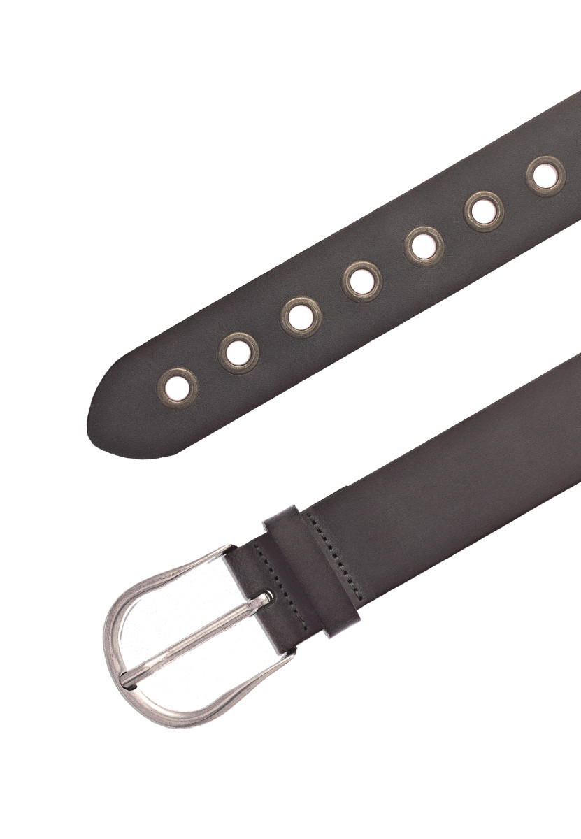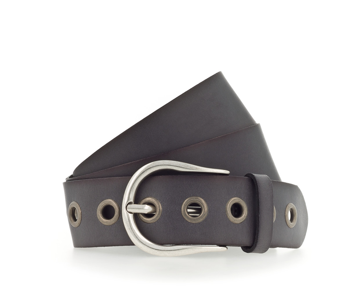 Der Echtleder-Gürtel ist 40 mm breit mit Ösen, dunklen Airbrushkanten und einer geschwungenen Dornschließe in mattem Silber verziert. Das Material ist ein Leder in leichter Pull-Up-Optik mit Vintagecharakter. Dieser Gürtel ist die ideale Ergänzung zu allen Freizeit-Outfits und garantiert einen casual und sportiven Look. MADE IN METZINGEN. Die vollständige Fertigung im Vanzetti-Headquarter, am Modestandort Metzingen beim Familienunternehmen Bazlen, garantiert ein nachhaltig hergestelltes Produkt.