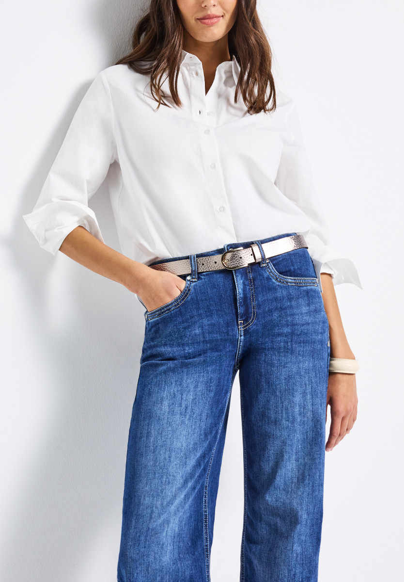 Ein glänzendes Statement Piece: Der Strukturgürtel von Street One für Damen begeistert mit seiner edlen Metallic-Optik. Die klassische Metallschnalle ergänzt den Look und macht den Gürtel zum Highlight deines Outfits. Ideal, um schlichte Styles modisch aufzuwerten. Strukturgürtel Metallschnalle Metallic Optik Glänzendes Statement Piece Material: 100% Leder