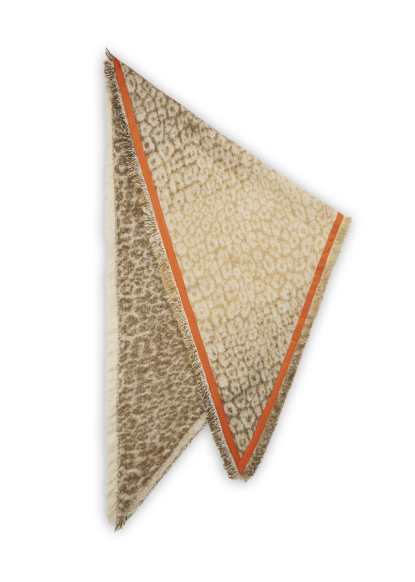 Dieses elegante beige Dreieckstuch bringt Wärme und Farbe in deine Herbst- und Wintergarderobe. Das dezente, allover Muster kombiniert mit einem auffälligen orangen Rand setzt einen modischen Akzent und macht den Schal zu einem echten Hingucker. Der weiche Stoff sorgt für ein angenehmes Tragegefühl, während die Fransen an den Rändern dem Look eine lässige Note verleihen.