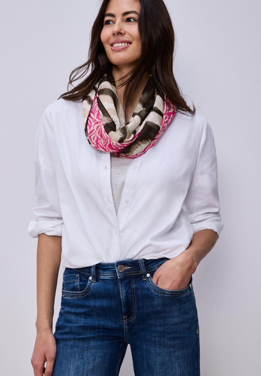 Der Loop-Schal überzeugt mit seinem trendigen Zebramuster und eignet sich als stylisches Accessoire für den Alltag. Die geschlossene Schlauchform sorgt für einfaches Styling und angenehmen Tragekomfort. Dank der weichen Modalqualität wirkt der Schal besonders anschmiegsam und passt zu lässigen Casual-Outfits.Lief.-Art-Nr: A573106