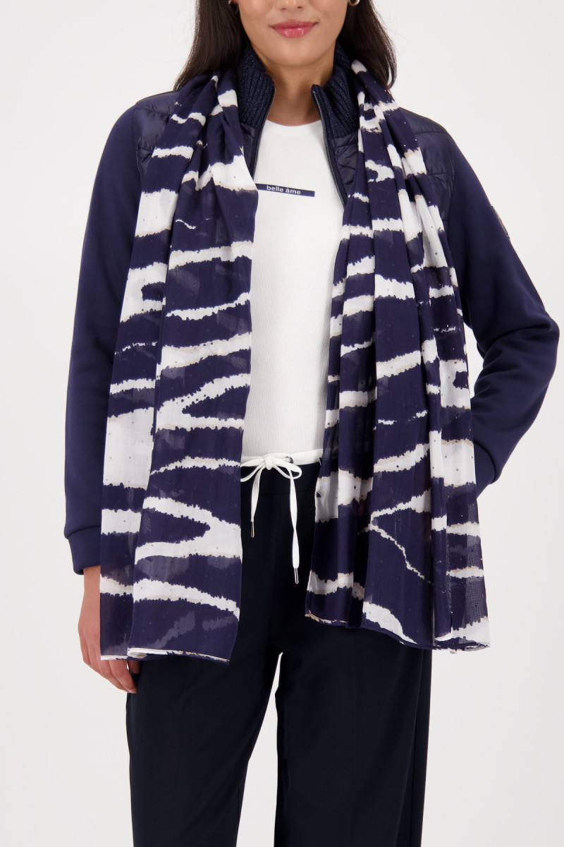 Dieses modische Tuch aus fließender Viskose überzeugt mit einem ausdrucksstarken Allover-Zebramuster mit Strasssteinen. Die rechteckige Form ermöglicht vielseitige Styling-Varianten – ob lässig um den Hals, als Haarband oder dekoratives Accessoire. Der weiche Stoff trägt sich angenehm leicht und verleiht jedem Outfit das gewisse Etwas.