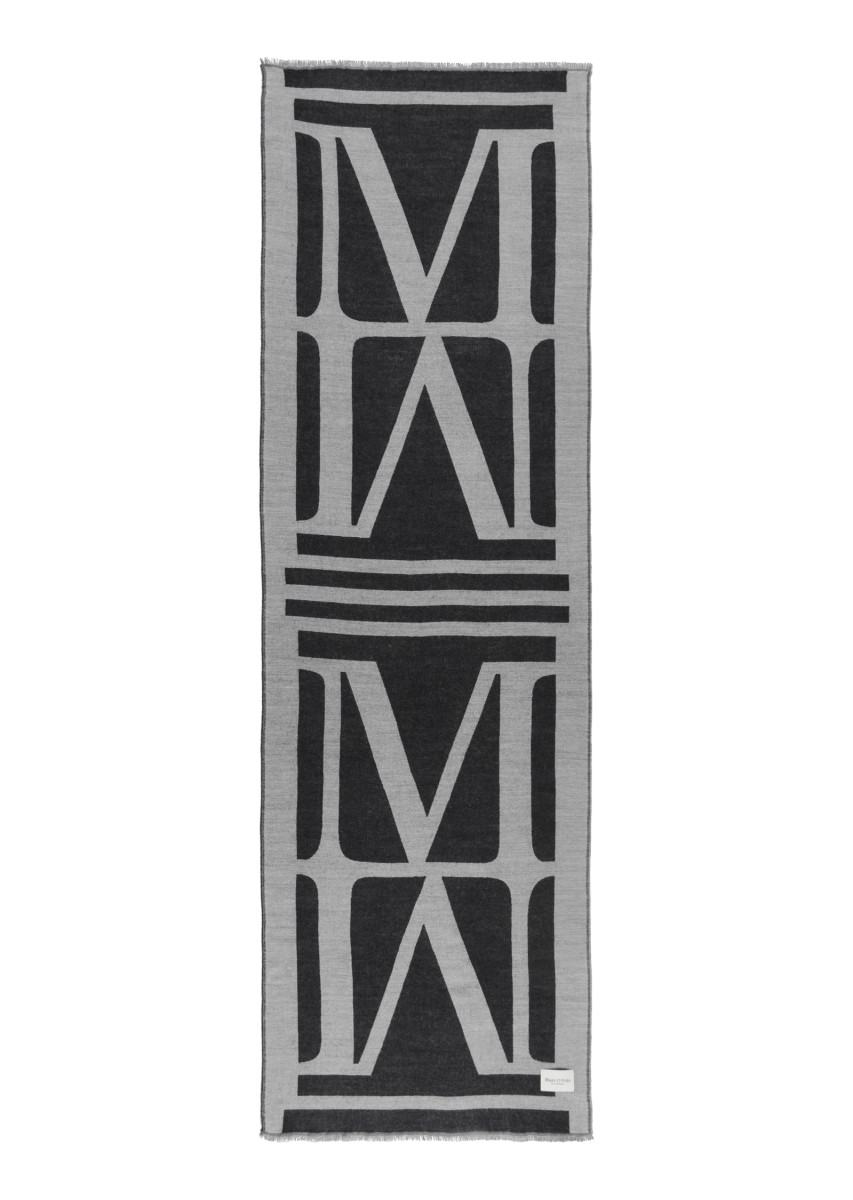 Gemustert | Fransen am Ende | Viskose-Woll-Mix | Logo-Emblem