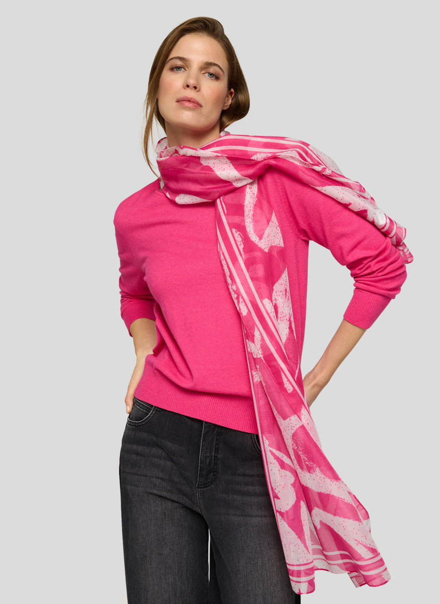 Dieser weich fallende Schal mit kontrastreichem Allover-Schriftmuster setzt ein stilvolles Statement und verleiht Outfits eine moderne Note. Die rechteckige Form erlaubt zahlreiche Tragevarianten – locker gelegt, geknotet oder geschlungen – und die farblich abgesetzten Ränder bilden einen harmonischen Rahmen. Dank des großflächigen Designs ist er ein vielseitig kombinierbarer modischer Akzent für schlichte Looks.Lief.-Art-Nr: 55-231940