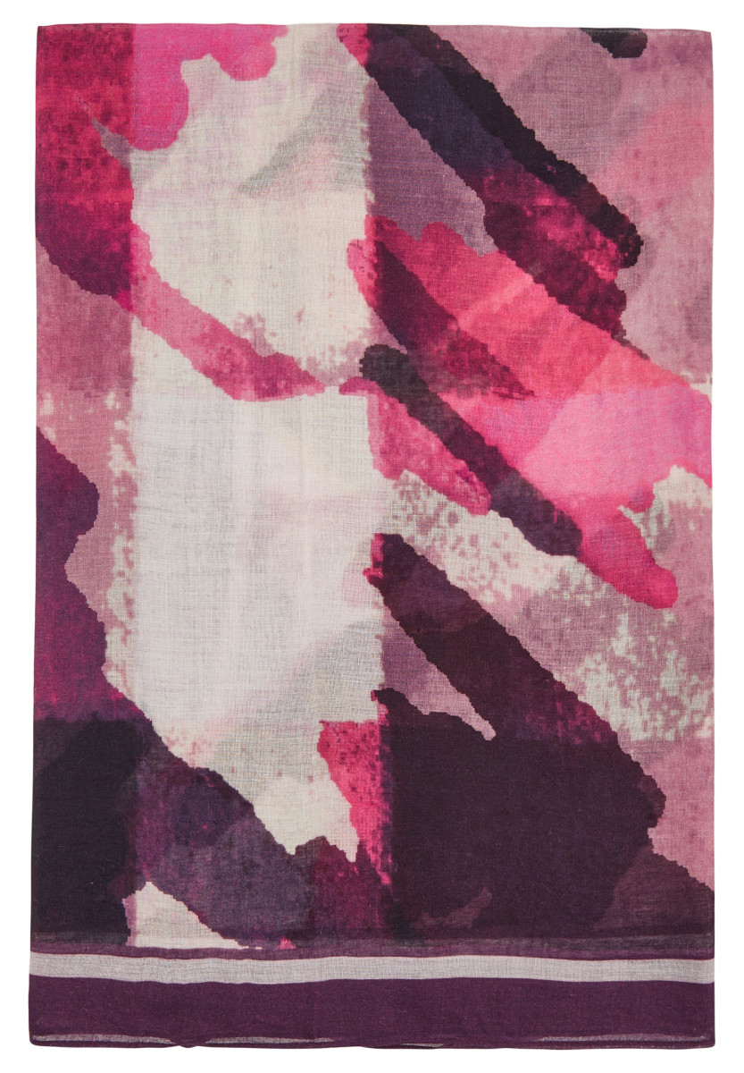 Dieser leichte Schal punktet mit einem künstlerisch-abstrakten Allover-Print und einem schmalen Bordürenabschluss. Der weiche, transparente Stoff trägt sich angenehm auf der Haut und lässt sich vielseitig kombinieren _ ob zu Jacke, Mantel oder Pullover.