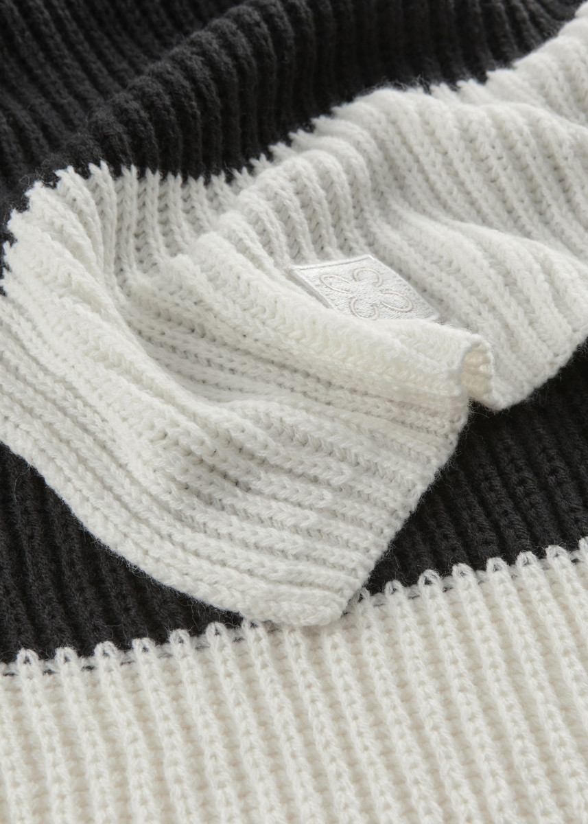 Ein kleines, tonales Logo-Patch rundet das Design dezent ab. Ob zur Daunenjacke, zum Mantel oder zur Jeansjacke – dieser Schal ist das perfekte Accessoire für alle, die es bunt und cozy mögen.