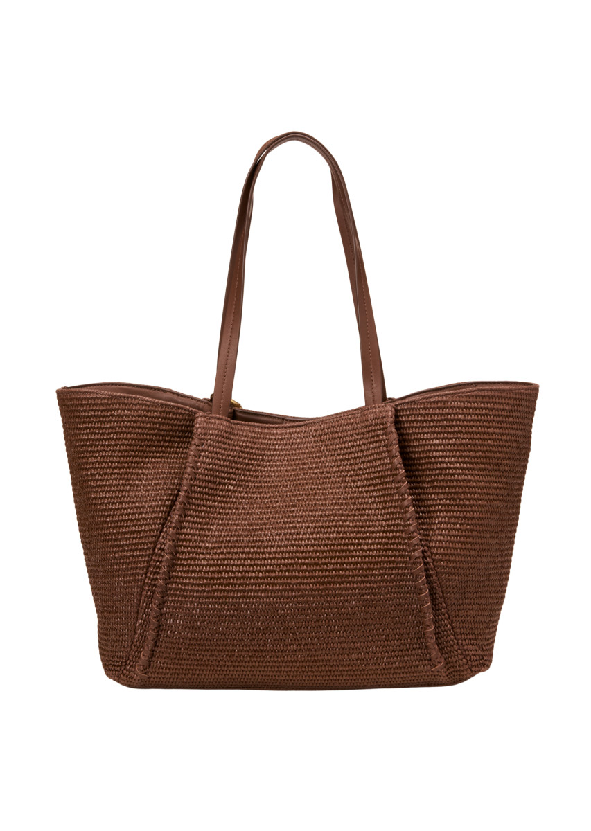 Natürliche Bastoptik trifft auf hochwertige Echtlederdetails: Der Shopper besticht durch markante, umflochtene Falten-Details und einen ausgewogenen Materialmix. Das großzügige Hauptfach ist mit Organic Cotton gefüttert und bietet mit einem seitlichen Zipperfach inklusive Münzfach klare Struktur. Die kurzen Schulterriemen aus Leder liegen angenehm in der Hand und auf der Schulter. Akzente setzen das Lederlogo auf der Front sowie der abnehmbare Schlüsselanhänger – der perfekte Begleiter für stilvolle Alltagslooks mit sommerlicher Leichtigkeit.