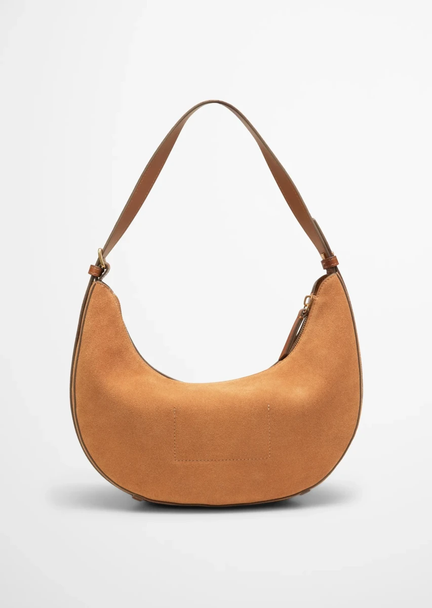 Klein und raffiniert präsentiert sich die elegante Crossbody-Bag, die trotz ihres kompakten Formats ausreichend Platz für alle wichtigen Utensilien bietet. Mit einem stilvollen Design und erstklassiger Verarbeitung wird sie zum idealen Accessoire für jede Gelegenheit. Gefertigt aus hochwertigem Velours-Rindleder und versehen mit einem weichen Mikrofaser-Bonding, überzeugt die Tasche durch ihre edlen Materialien. Das Hauptfach, ergänzt durch ein praktisches Münzfach, ist sicher mit einem Reißverschluss verschlossen. Der schmale, verstellbare Schulterriemen, ausgestattet mit einer goldfarbenen Metallniete und Schnalle, bietet vielfältige Tragemöglichkeiten: unter der Achsel, lang über der Schulter oder als Crossbody.