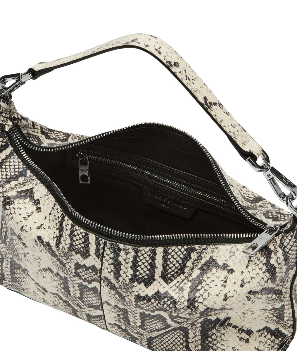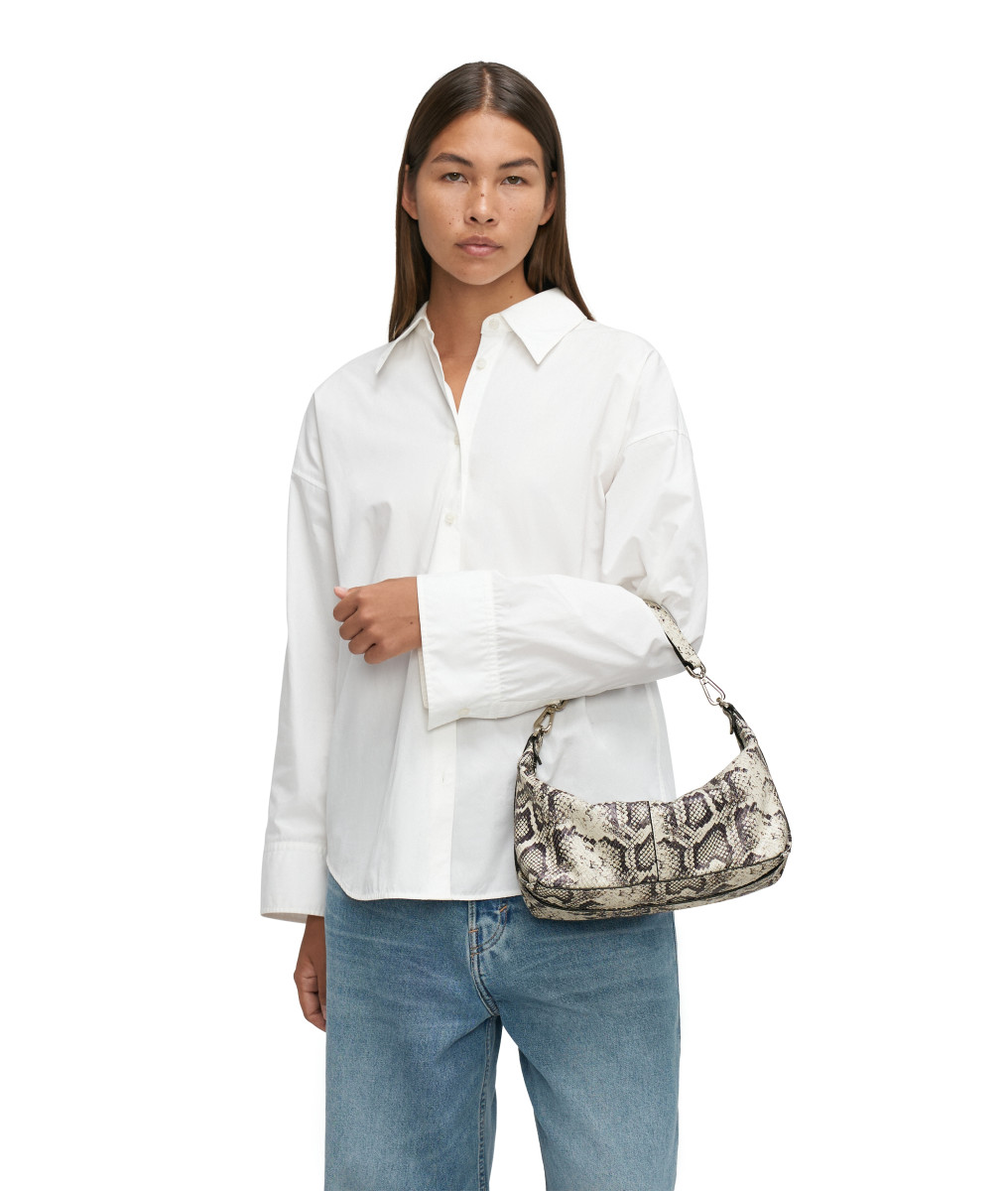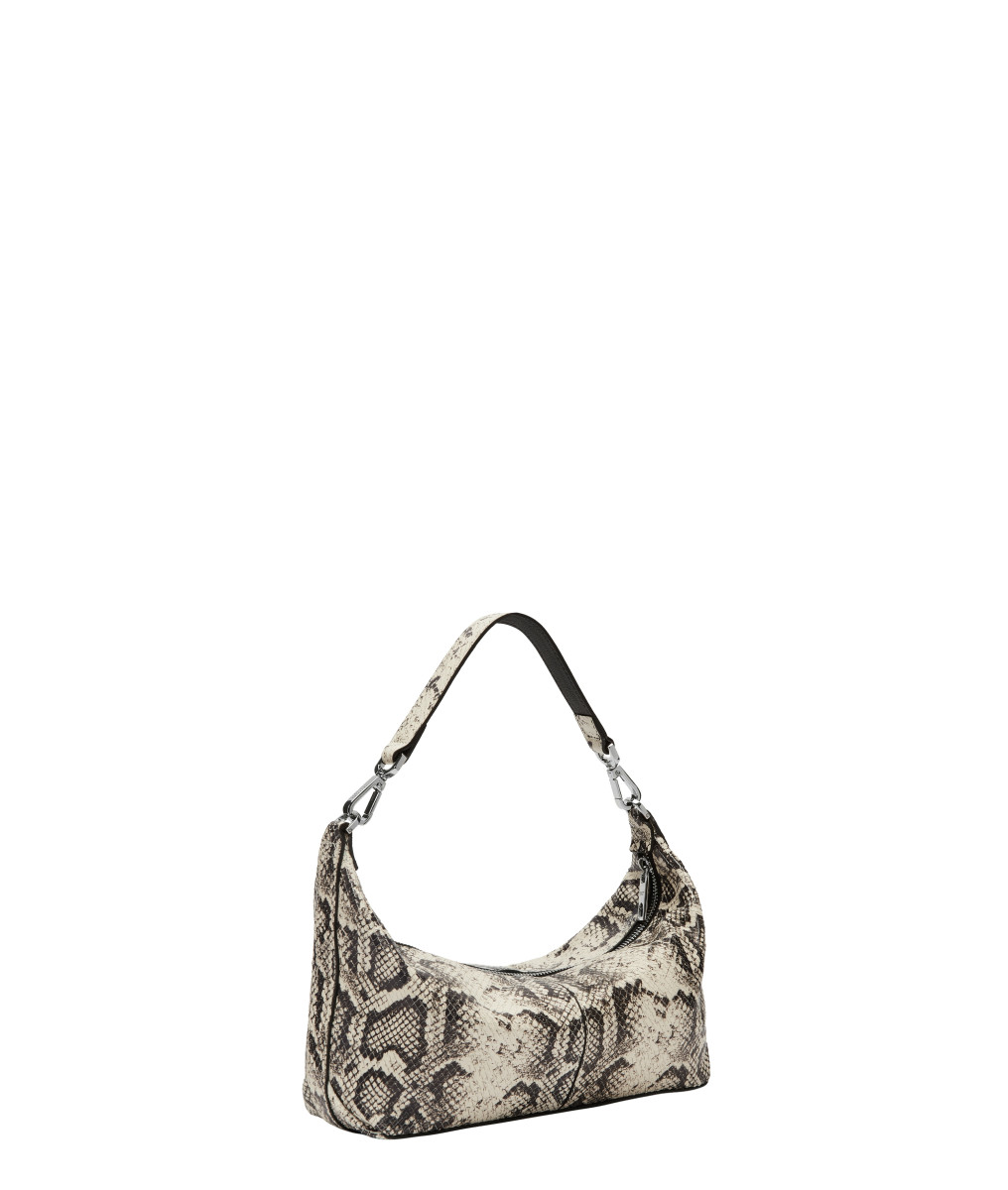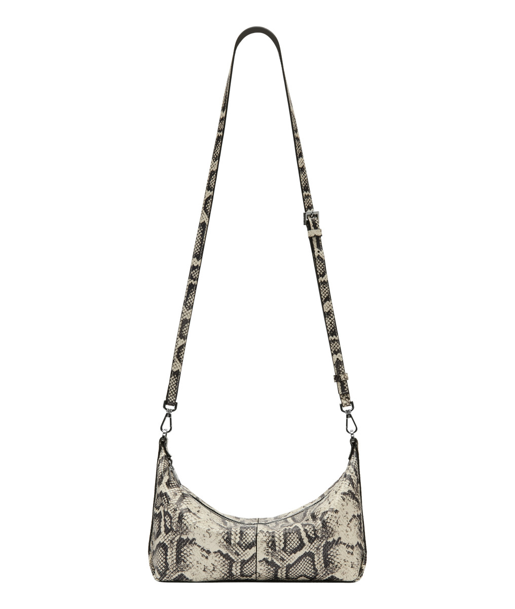 Rindsleder in Snake-Optik mit Two-Tone-Effekt Hauptfach mit Reißverschluss Innenraum mit Reißverschlussfach abnehmbarer Lederschultergurt zusätzlich langer Crossbody-Gurt aus Leder mit Karabinern zum Einhängen Lässiger Casual-Style | Snake Paris Hobo S Die Paris Hobo S kommt in kompakter Größe und charakteristischer Beuteltaschen-Form aus Rindsleder in Snake-Optik mit Two-Tone-Effekt. Das geräumige Hauptfach mit Reißverschluss bietet genügend Platz für alle Utensilien. Markant ist der breite, verstellbare Tragehenkel, der ihr einen sportiven Touch verleiht. Mit ihrem minimalistischen Design ist die Paris Hobo eine ideale Begleitung für entspannte Alltags-Looks.