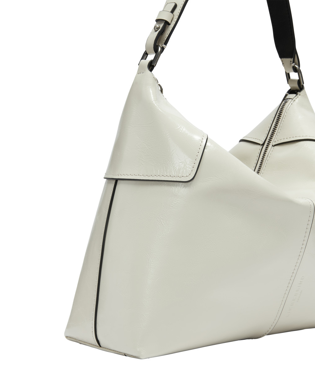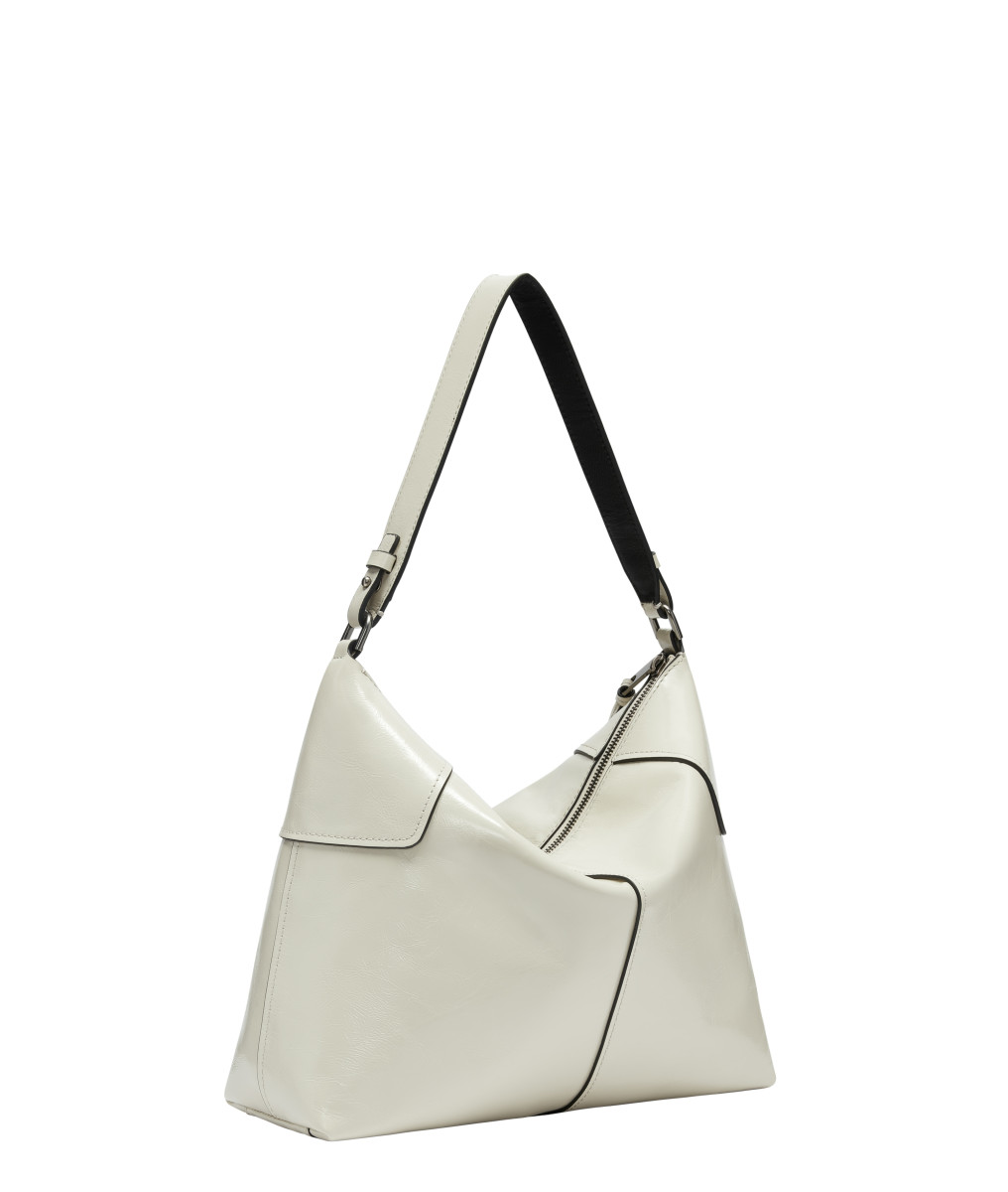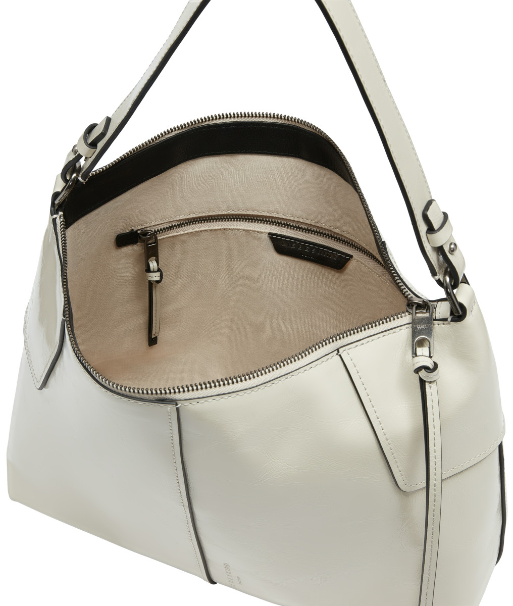 Die Mila Hobo M als kleinere Variante der Mila Hobo L ist eine klassische Interpretation der ikonischen Hobo Bag. Ihren charakteristischen Look verdankt sie der typisch knautschigen Form, mit der sie sich perfekt an den Körper anschmiegt. Die hochwertige Verarbeitung aus Rindsleder in glänzender Optik ergibt ein stimmiges Gesamtbild. Eine dekorative Teilungsnaht und die senkrechte Logoprägung runden das Design gekonnt ab.