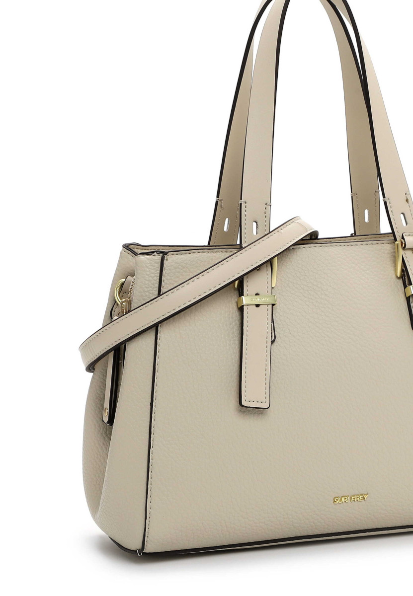 SURI FREY - die Marke für “Freygeister" Eine Handtasche ist wie eine gute Freundin, sie lässt einen nie im Stich. SFY Maggy ist der wunderschöne Shopper aus Feinsynthetik mit Reißverschluss, der echte Persönlichkeit ausstrahlt. Er ist ein lässiges Statement für den Alltag. Ein Shopper auf den man zählen kann. Gefertigt ist das Modell, das sich mit einem Reißverschluss verschließen lässt, aus Feinsynthetik. Durch das Material ist es angenehm im Griff. Mit seiner Echtleder-Optik und dem Uni-Design ist der hochwertige Shopper ein echter Hingucker. Die tollen Accessoires von SURI FREY stehen für Freiheit, Lebenslust und Offenheit - genau das, was Frauen mit Selbstbewusstsein ausstrahlen. Der Shopper hat ein übersichtliches Hauptfach. Für alle, die eine weiche Haptik lieben - SFY Maggy ist angenehm anschmiegsam. Einen zusätzlichen Akzent setzt Single Lettering. Über der Schulter ist dieses Modell den zwei Tragegriffen zu tragen. Viel Platz für alles, was man als Frau so mit sich herumträgt, bietet der Shopper.