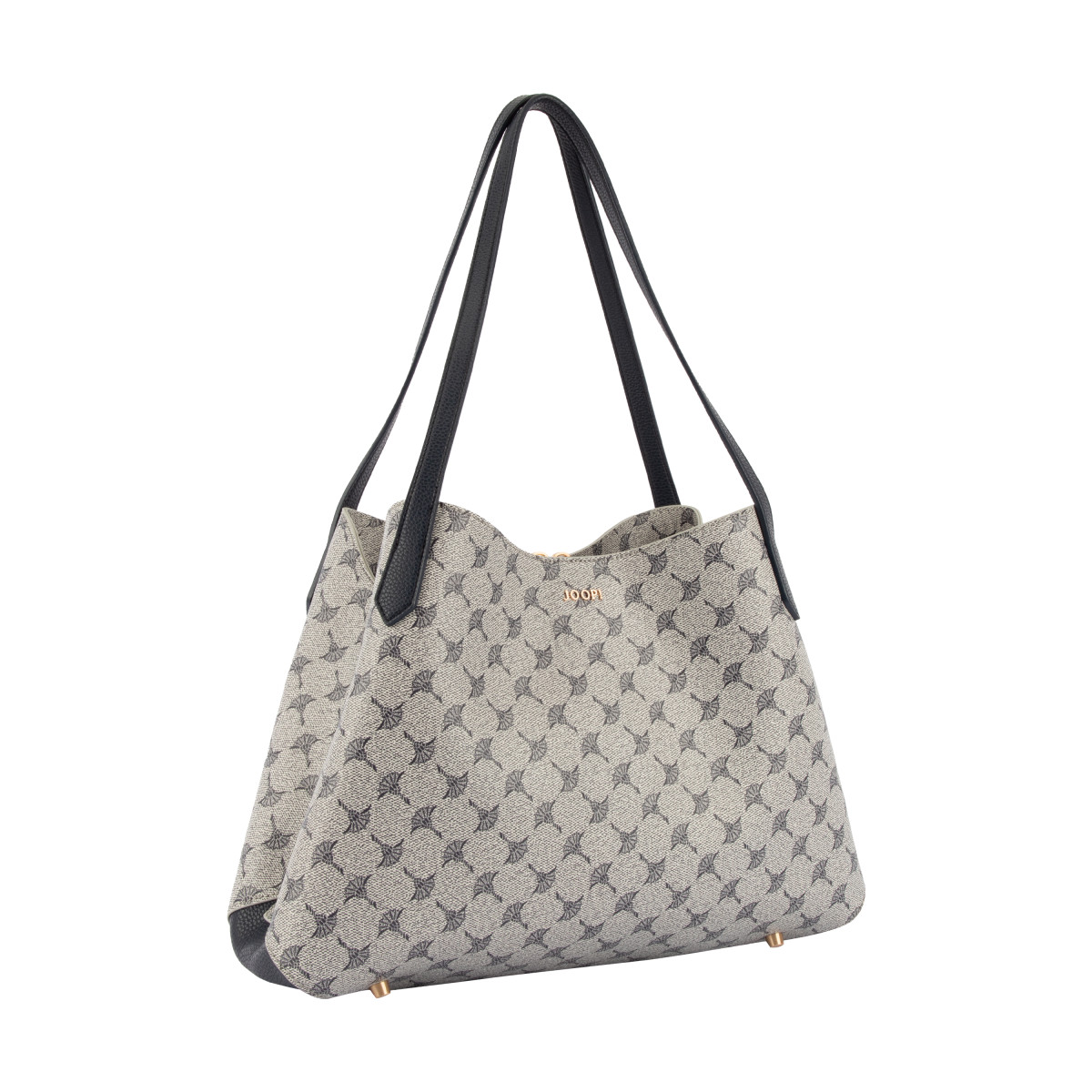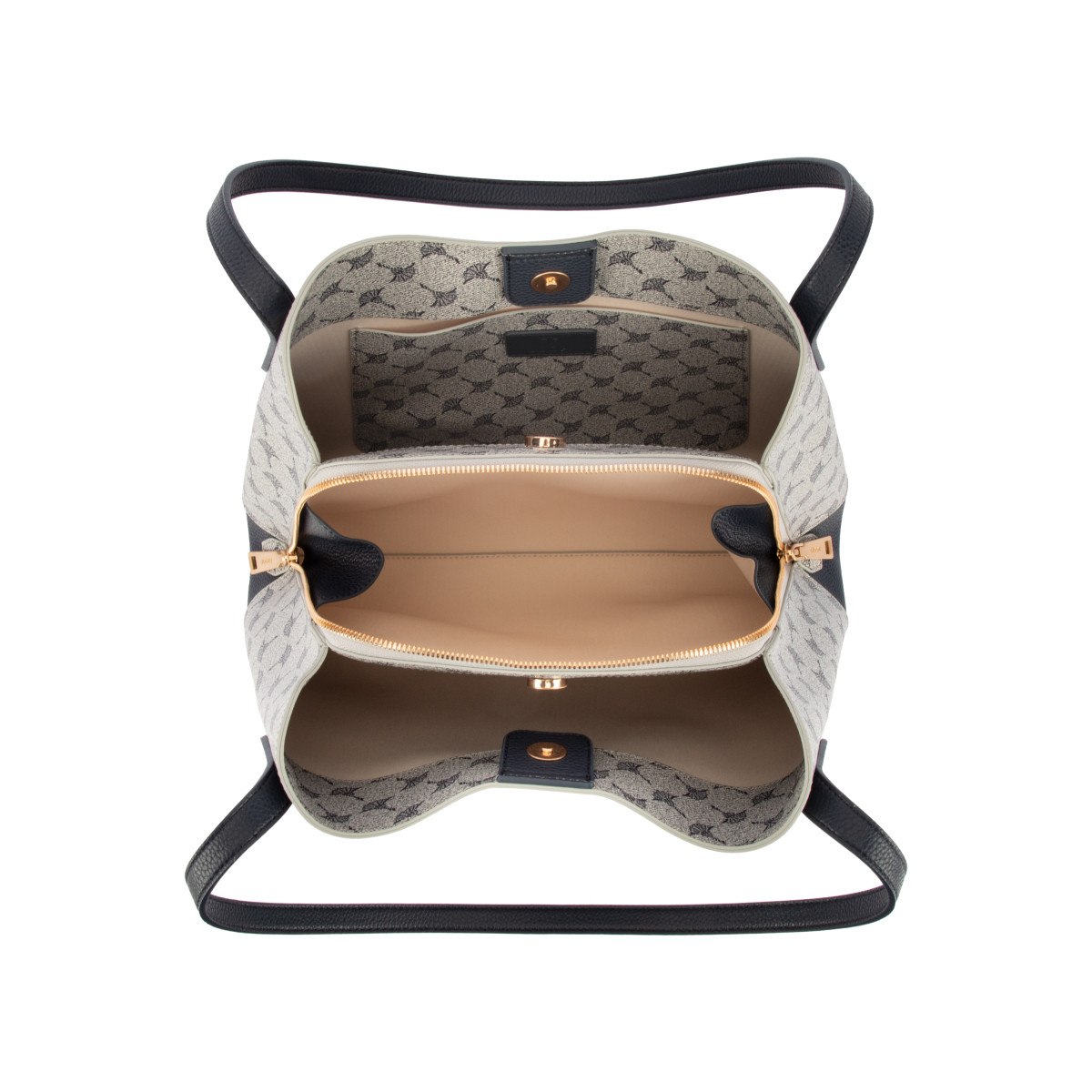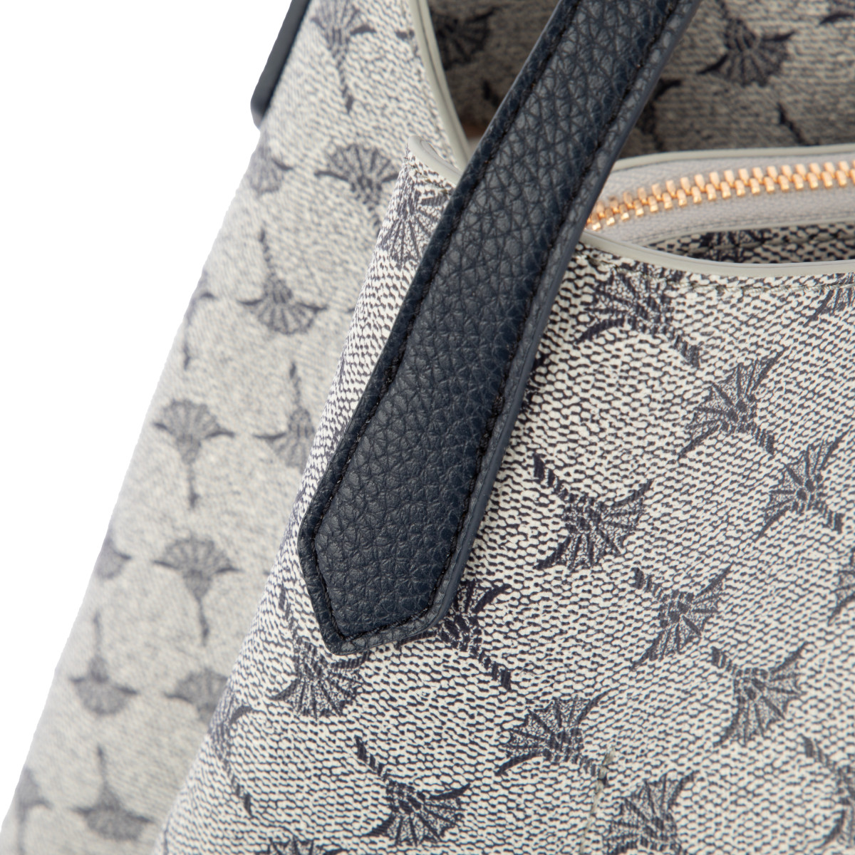 Shopper aus veganem Leder | Im Cornflower-Print-Design | Zip-Verschluss und seitliche Magnetverschlüsse | Klassische Tragehenkel | Logo-Relief auf der Front | Inlay in Trio-Aufteilung mit mittigem Zip-Fach | Ein inwendiges Steckfach | Edle Ziernähte | Schützende Taschenbodennieten