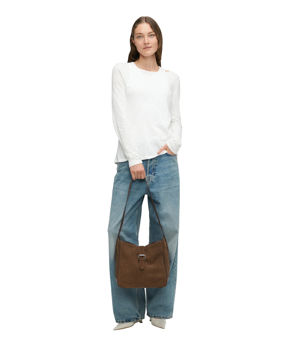 Ren Hobo M bringt eine lässige Selbstverständlichkeit in den Alltag. Gefertigt aus weichem Veloursleder, verbindet sie Stauraum mit klarer Linienführung – unaufgeregt, aber präsent. Das Hauptfach mit Reißverschluss und Schnallen-Detail schützt, was wichtig ist, während zwei Innensteckfächer für Ordnung sorgen. Ein rückseitiges Steckfach mit Magnetverschluss ergänzt den praktischen Charakter, ohne auf Stil zu verzichten. Der verstellbare Henkel und ein zusätzlicher Gurt machen sie wandelbar – von Schultertasche zur Crossbody in wenigen Handgriffen. Ren Hobo M ist eine Tasche, die Raum schafft – für Pläne, Spontanität und alles dazwischen.