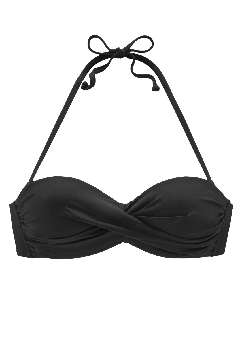 Lascana Damen Bügel-Bandeau-Top im Mix-Kini-Programm mit wattierten Cups herausnehmbare Kissen Oberstoff bildet mittig schöne Falten abnehmbare Träger ohne das Neckholderband bietet das Bandeautop durch die seitlichen Stäbchen auch einen guten Halt