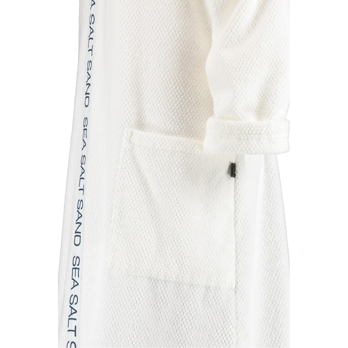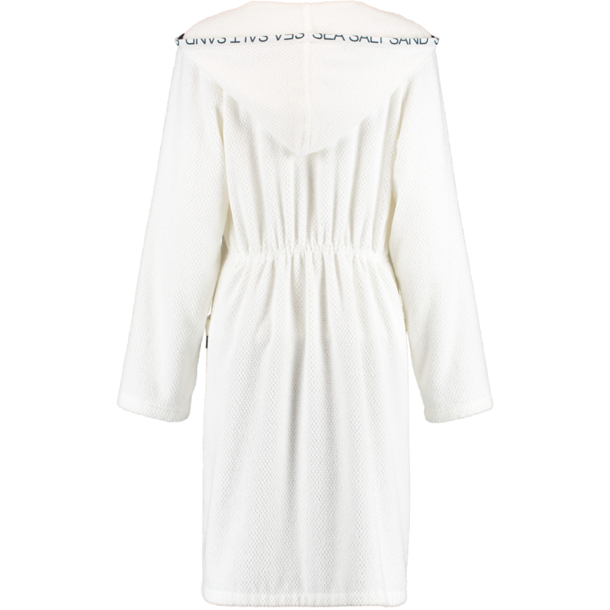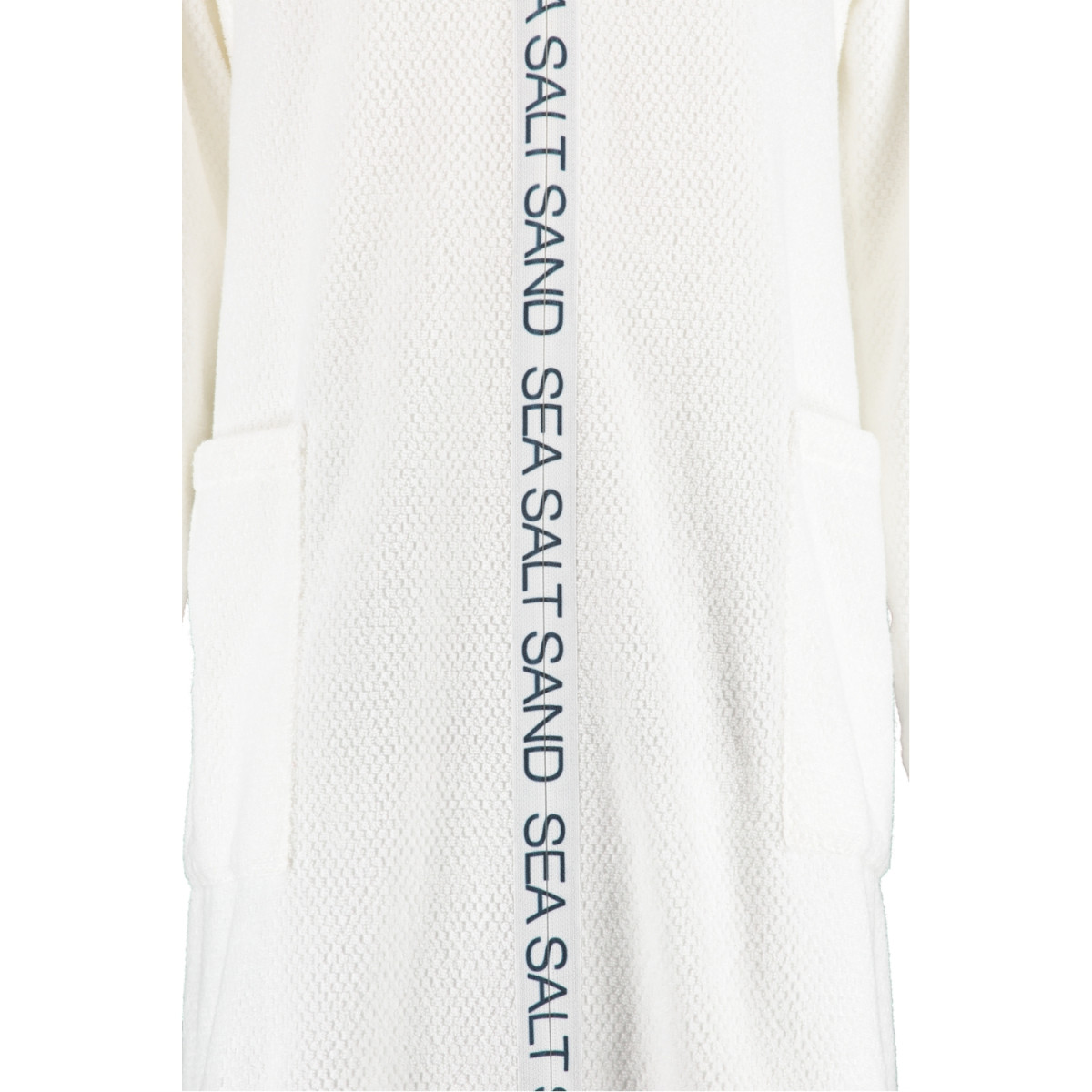 Dieser Cawö Kurz-Bademantel mit Reißverschluss und Kapuze im maritimen Look bietet hochwertige Walkfrottier-Qualität aus 100% Baumwolle. Seine attraktive Optik und der SEA SALT SAND Schriftzug entlang der Bordüre machen diesen Bademantel für Damen zu etwas ganz Besonderem.