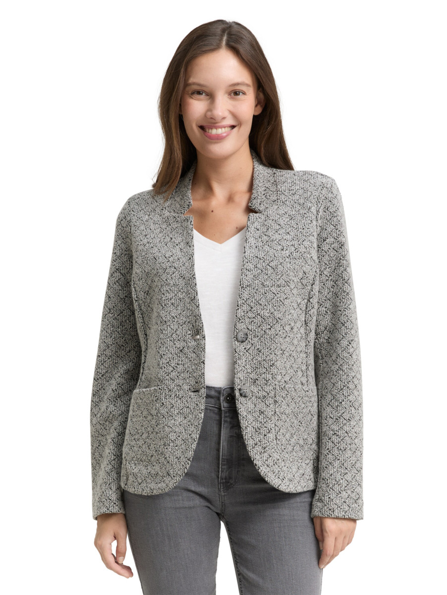Strukturierter Jacquard Blazer mit zwei aufgesetzten Taschen, Knopfverschluss und Reverskragen