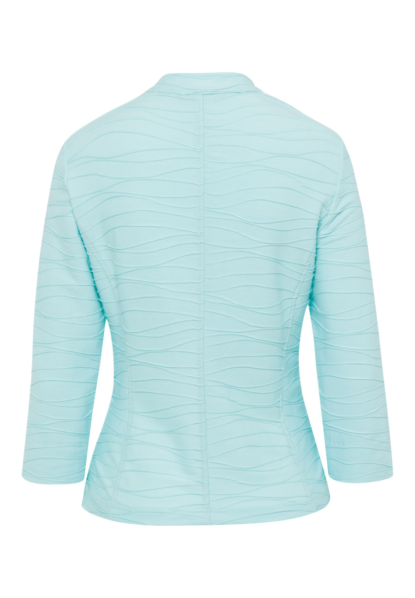 Ein Blazer mit tailliertem Schnitt, dezentem Muster und zwei Knöpfen auf der Vorderseite. Mit zwei aufgesetzten Taschen und leicht ausgestelltem Saum. Die strukturierte Oberfläche gibt dem Blazer eine besondere Optik. Perfekt für elegante oder legere Anlässe