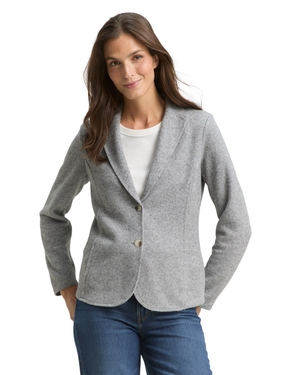 Melierter Blazer aus einem weichen Single-Jersey-Stoff | Fitted - schmaler Schnitt | Brustweite bei Größe M ca. 48 cm | Rückenlänge bei Größe M ca. 61 cm