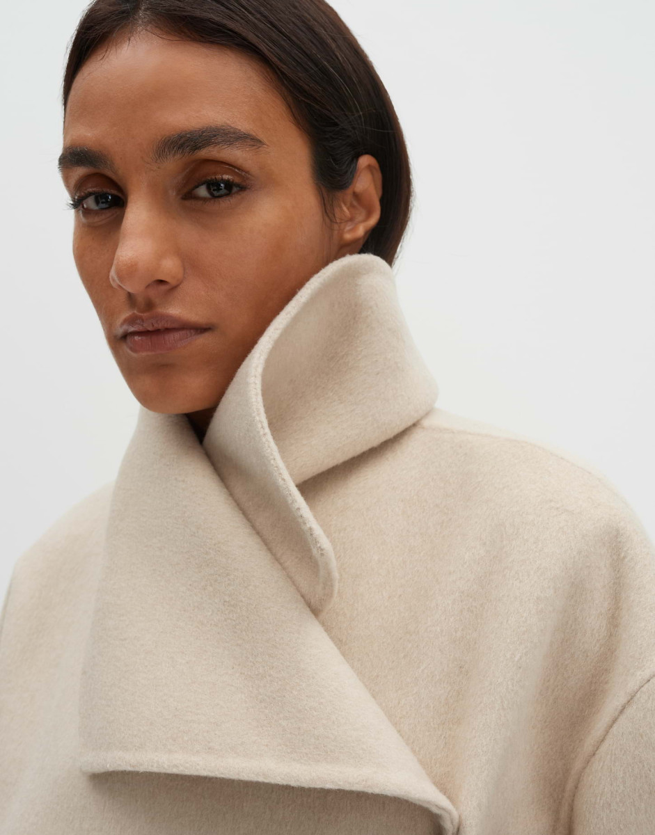 Der Blazer Naria besticht durch seinen Schalkragen und die lockere, leicht ausgestellt geschnittene Passform mit überschnittener Schulter. Die Rückenlänge beträgt ca. 58 cm (bei Größe 36) und sorgt für eine moderne Silhouette, während schräge Paspeltaschen und metallische Druckknöpfe das Design abrunden. Das Doubleface Wollgemisch mit gekämmter Oberfläche verleiht dem Blazer einen weichen Griff und hochwertigen Charakter.Lief.-Art-Nr: 10513913401408