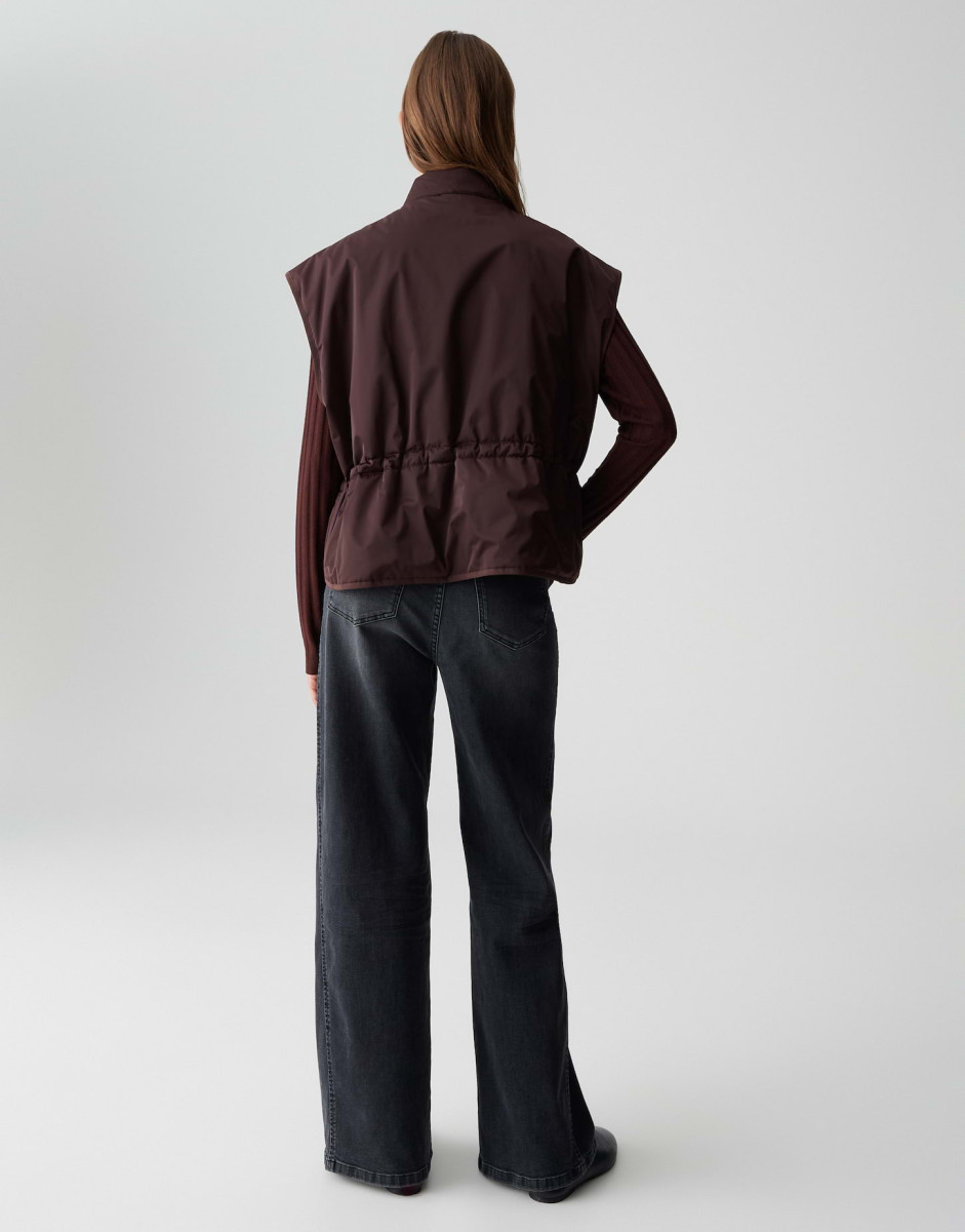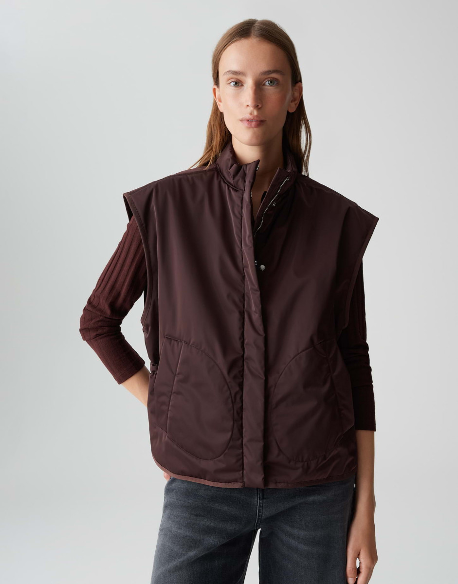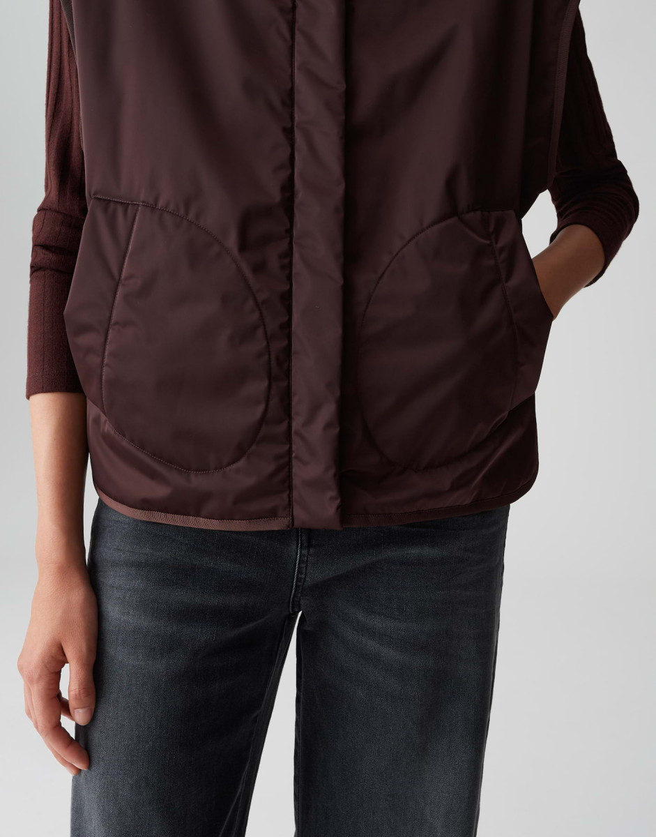 Diese ärmellose Steppweste ist der perfekte Begleiter für die Übergangszeit – funktional, stilvoll und nachhaltig. Mit ihrer lockeren Passform und der leichten Taillierung sorgt sie für eine schmeichelhafte Silhouette, ohne dabei auf Komfort zu verzichten. Der hohe Stehkragen schützt zuverlässig vor Wind, während der Tunnelzug in der Taille eine individuelle Passform ermöglicht.