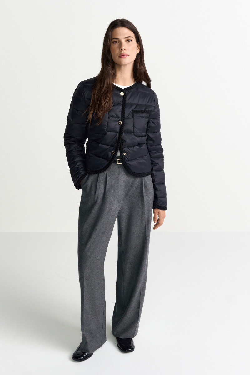 Mit aufgesetzten Taschen und einer kompakten Steppung sorgt diese Jacke nicht nur für Wärme, sondern auch für eine moderne, figurschmeichelnde Passform. Der kurze Schnitt macht die Jacke ideal für Alltagsoutfits, die sowohl praktisch als auch modisch sind.