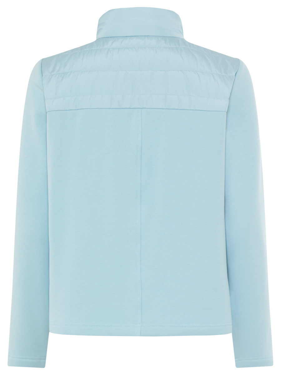Ein echtes Allround-Talent für moderne Looks: Diese Jacke überzeugt durch ihren spannenden Materialmix – mit elastischem Jersey an Ärmeln, Seiten und Rücken, kombiniert mit leicht glänzender Webware an Vorderteil, Rückenkoller und Stehkragen. Die wattierte Steppung im Vorderbereich sowie am Kragen und Rückenpasse sorgt für ein modernes Finish und angenehme Wärme. Der hochschließende Stehkragen mit softer Füllung unterstreicht den sportiv-edlen Look, während die figurbetonte Silhouette schmeichelhaft anliegt. Zwei praktische Reißverschlusstaschen seitlich bieten Platz für Essentials. Der durchgehende Zipper rundet das Design funktional ab. Länge ca. 58 cm.