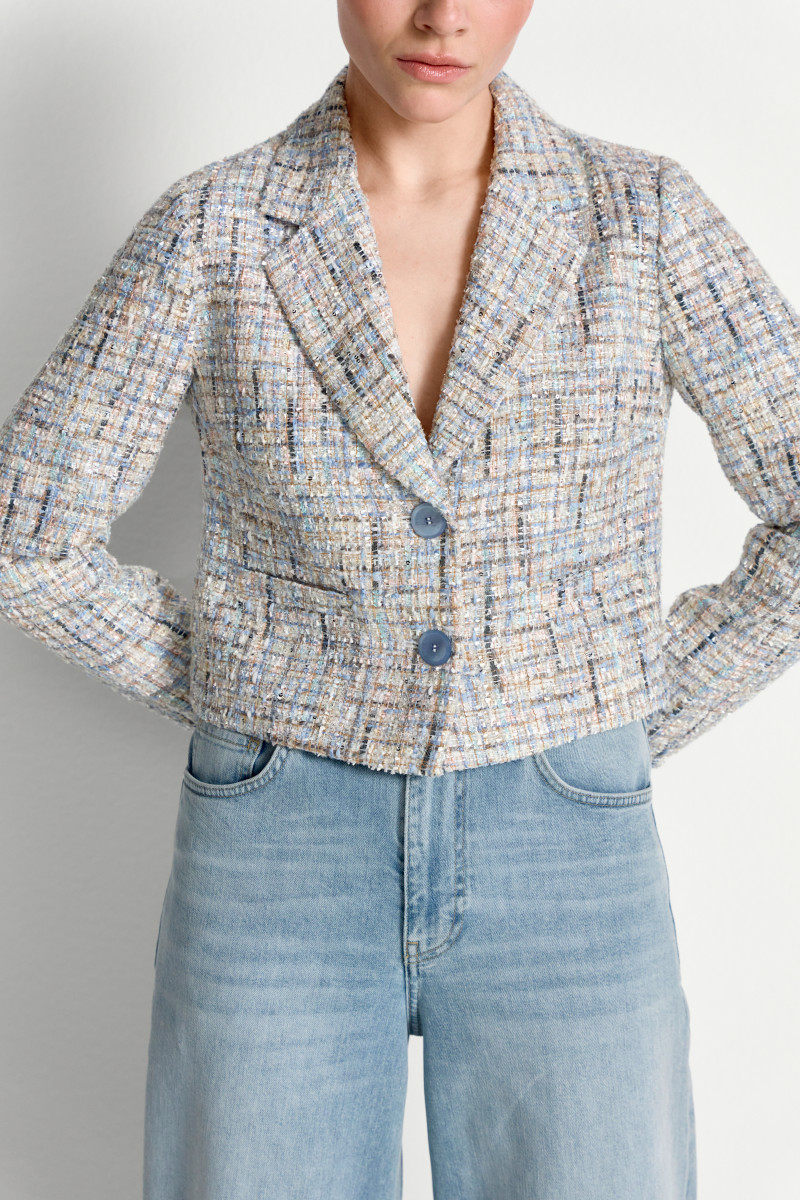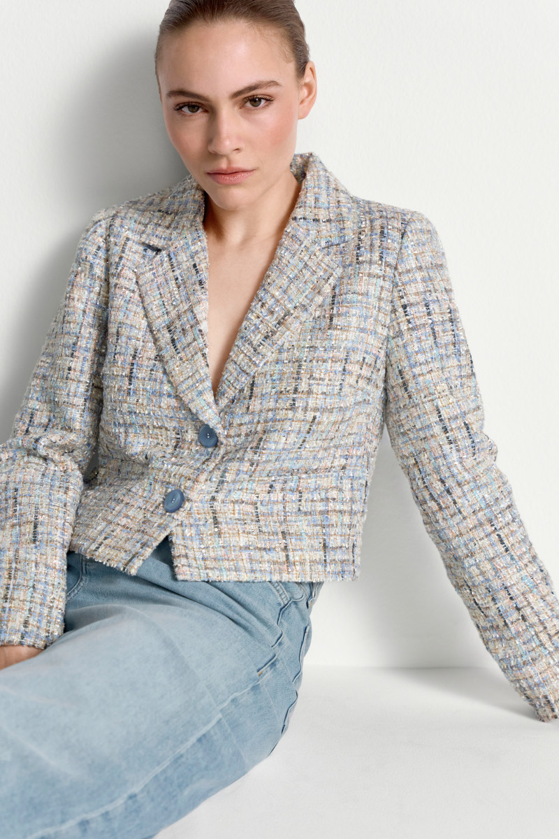 Modische, kurz geschnittene Jacke für Damen. Die Jacke besticht durch eine Bouclé-Optik und eine klare Silhouette, die einen eleganten Eindruck vermittelt. Sie lässt sich vielseitig kombinieren und eignet sich sowohl für Business- als auch für stilvolle Freizeitoutfits.Lief.-Art-Nr: 2603-807
