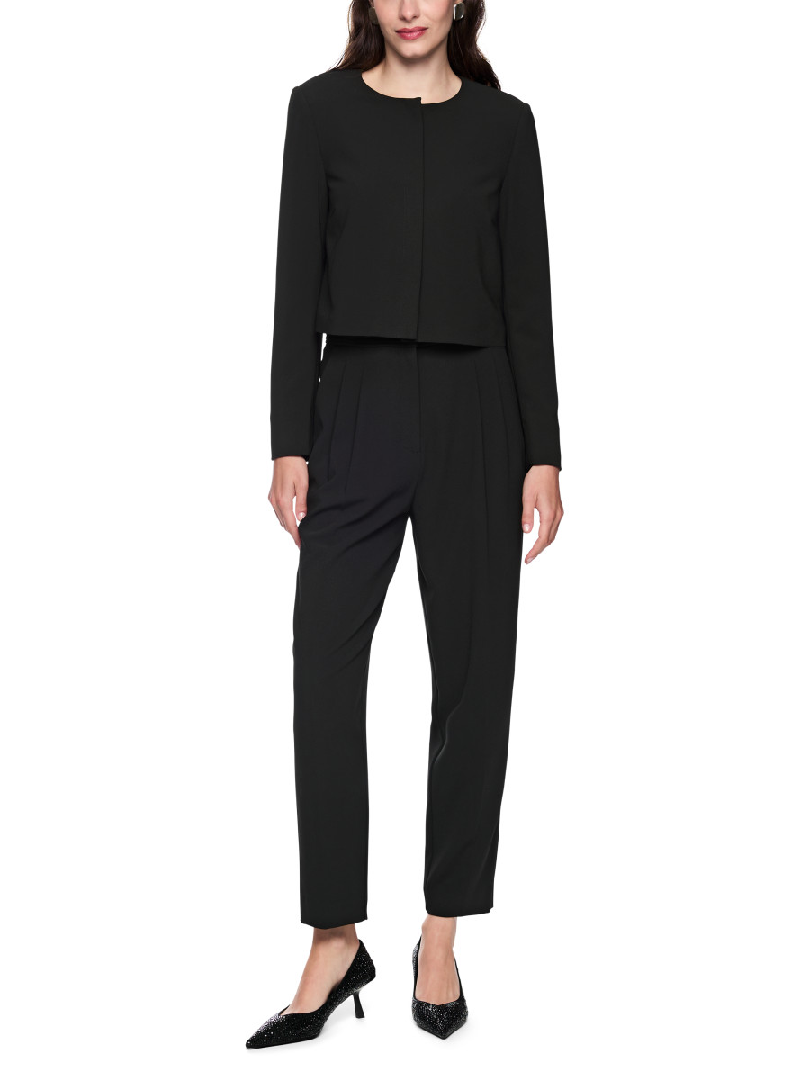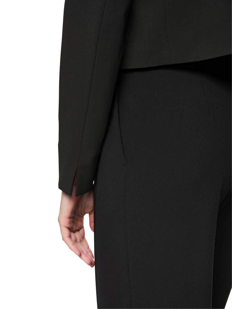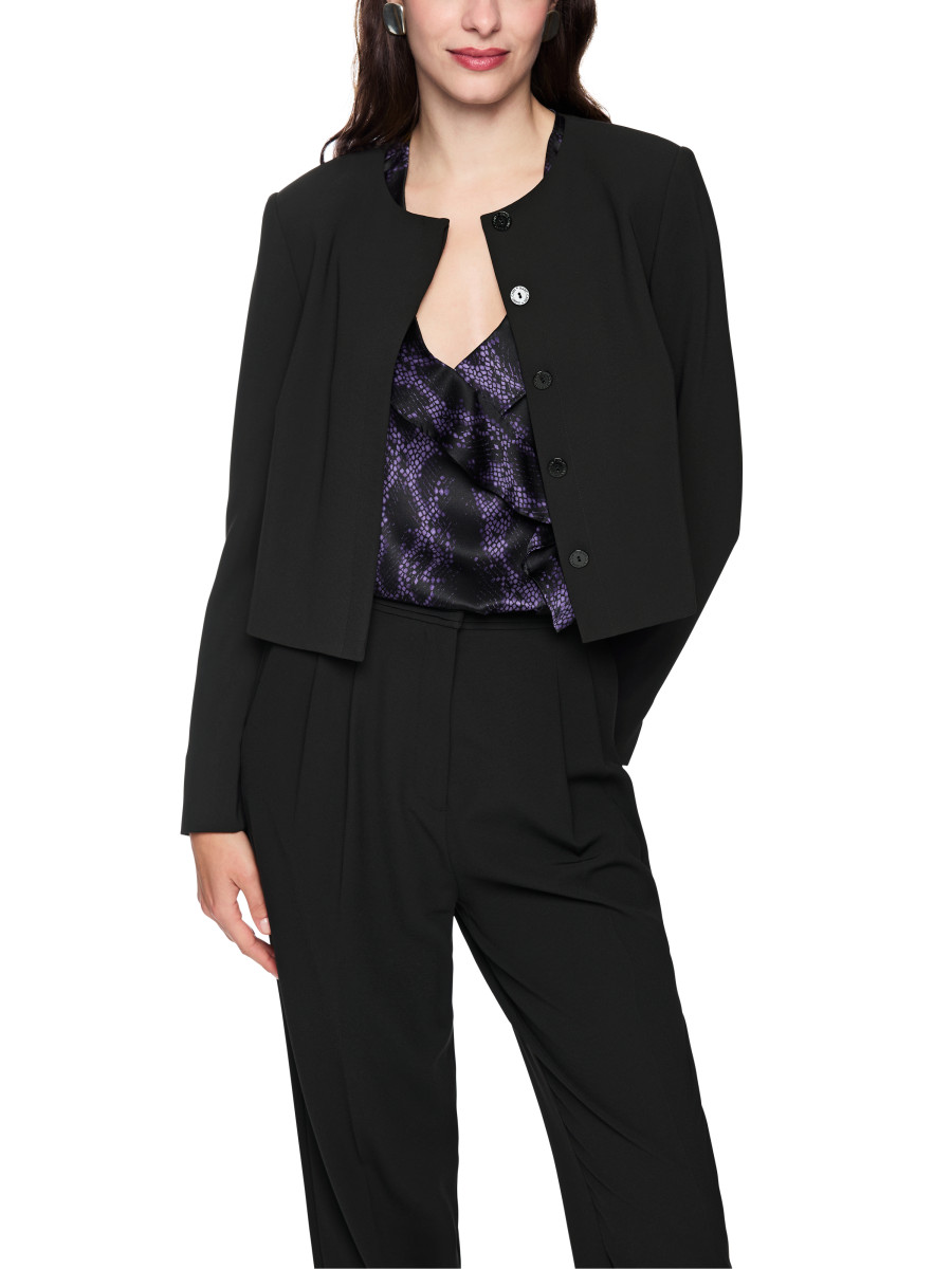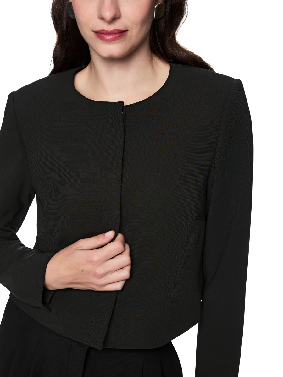 Dieses kurze Jäckchen ist die perfekte Ergänzung zu Kleidern und sorgt mit betonten Schultern für eine feminine Silhouette. Die verdeckte Knopfleiste verleiht dem Design eine elegante Note, während der Schlitz am Ärmelabschluss für einen raffinierten Look sorgt.