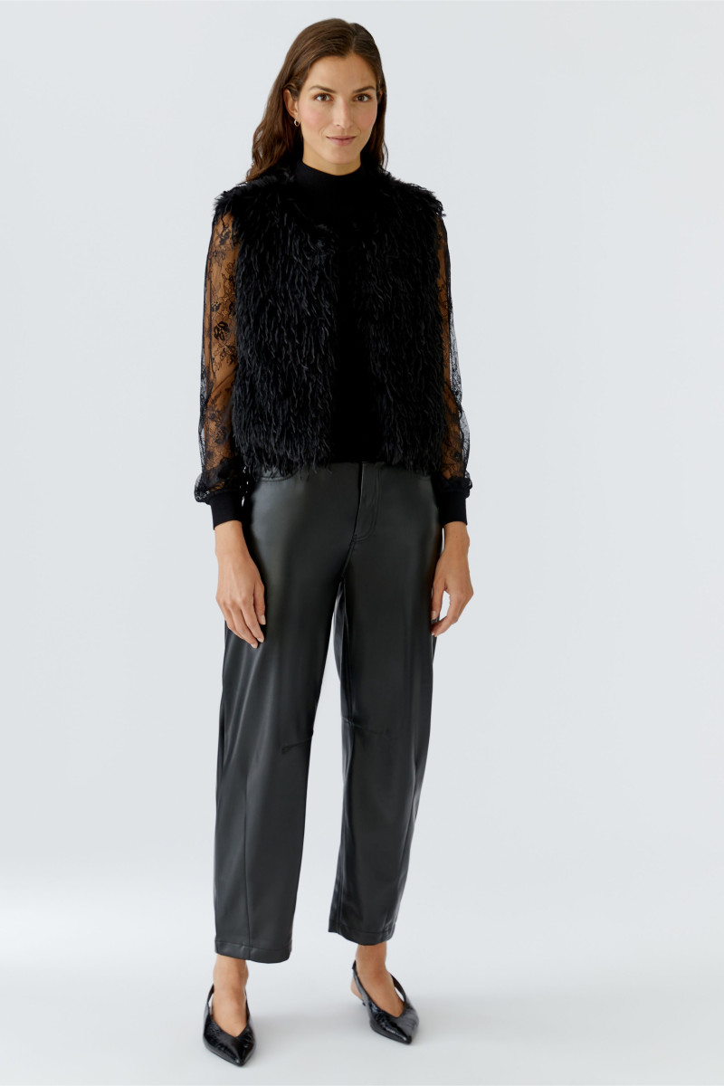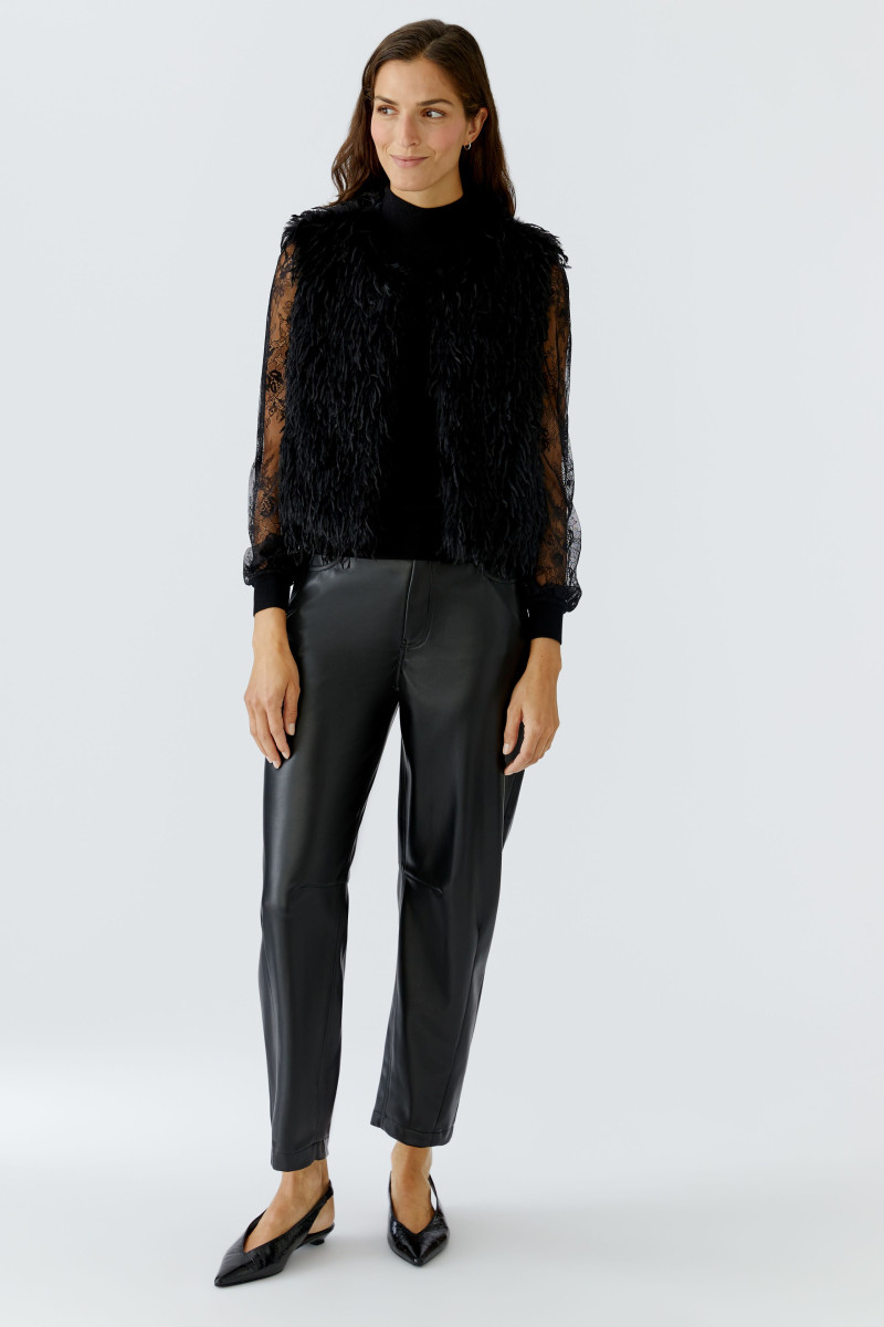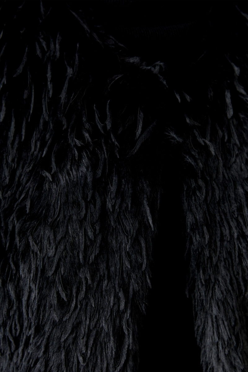 Kuscheliger Stoff mit langen Kunstfedern Gerade geschnitten, in verkürzter Länge Rundhals Mit Haken zu verschließen Seitliche Eingrifftaschen | Länge bei Größe 36: 48cm