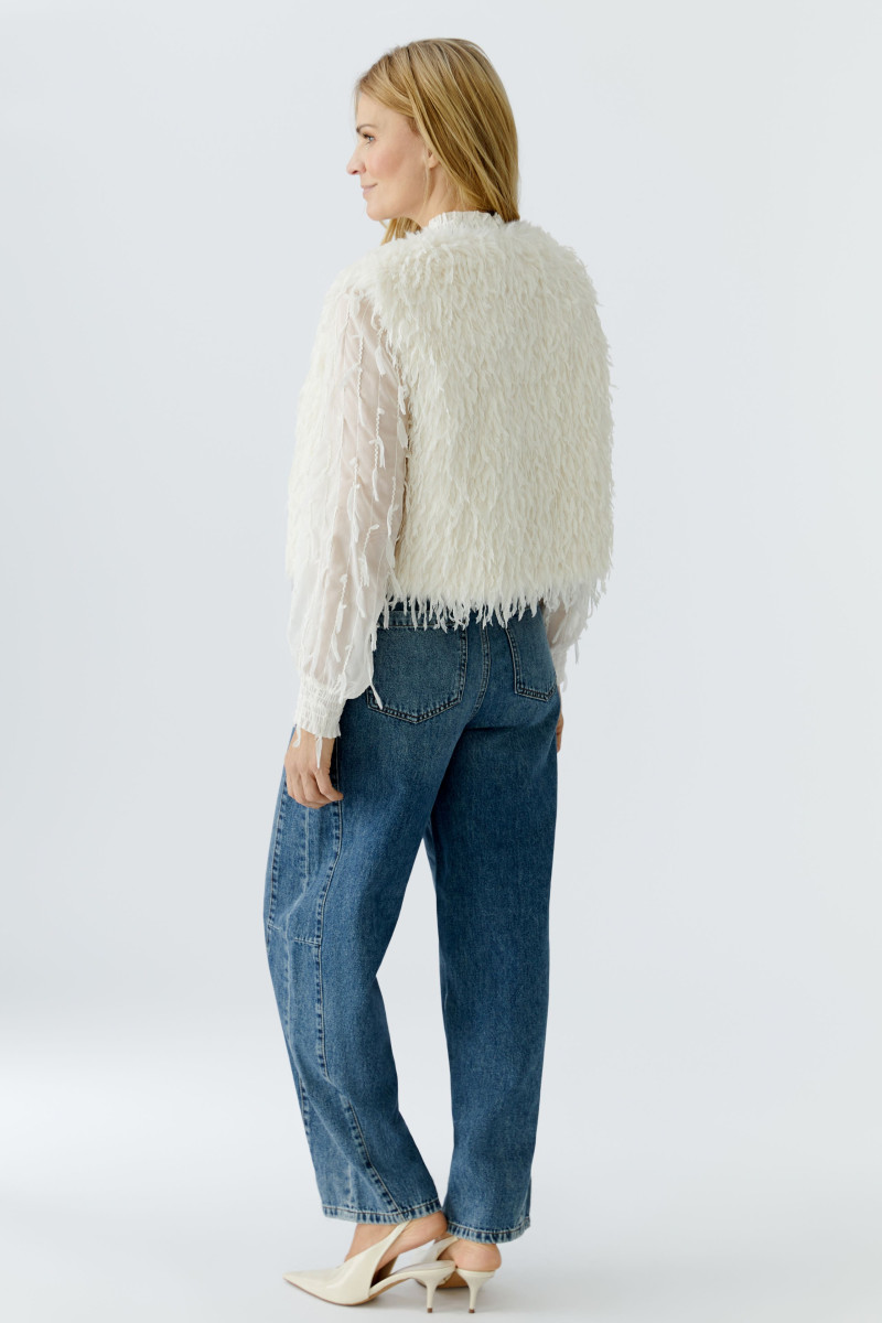 Kuscheliger Stoff mit langen Kunstfedern Gerade geschnitten, in verkürzter Länge Rundhals Mit Haken zu verschließen Seitliche Eingrifftaschen | Länge bei Größe 36: 48cm