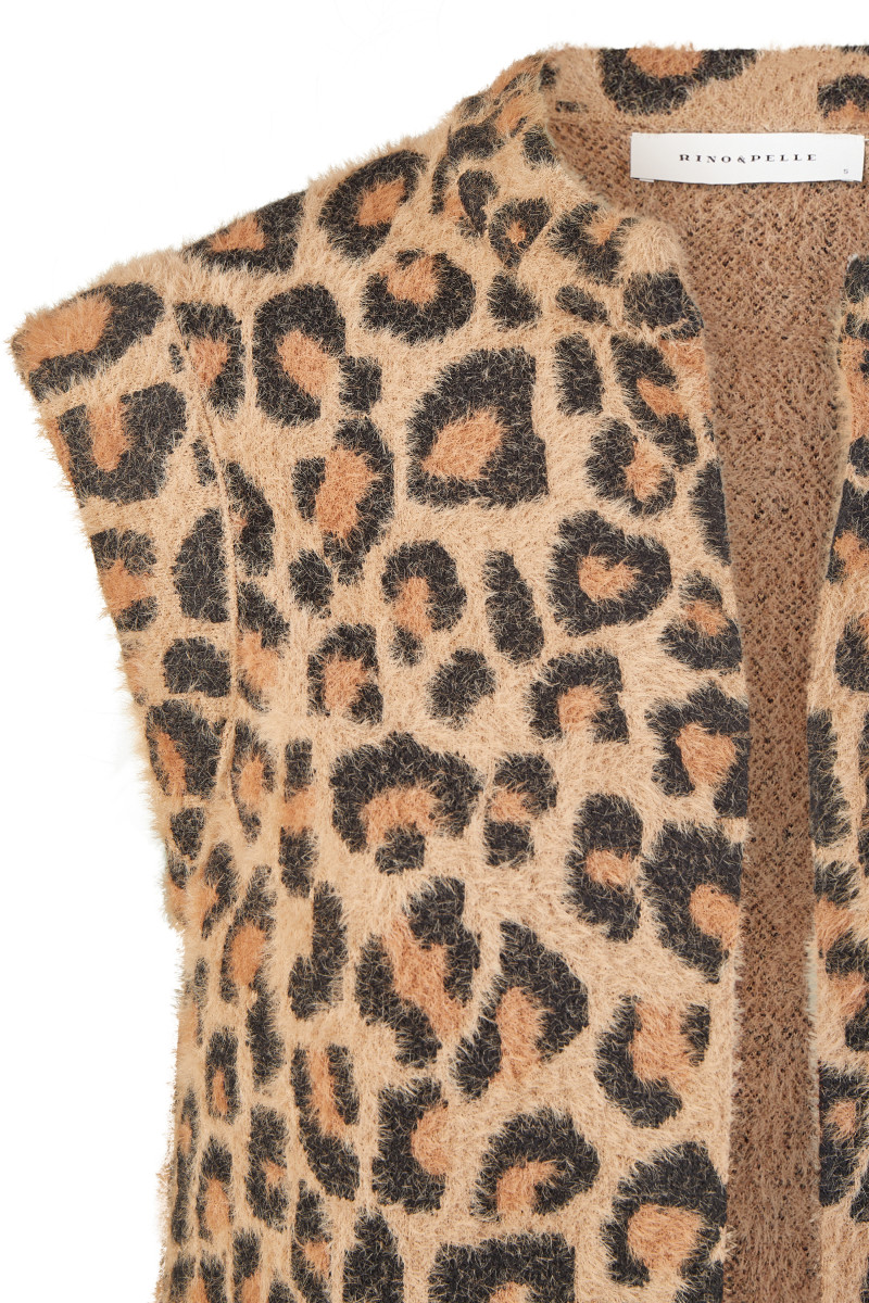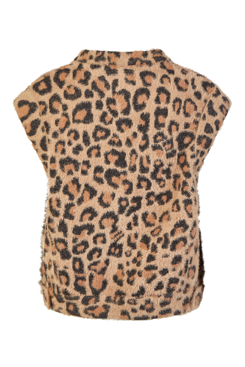 Gerader Schnitt | Rundhalsausschnitt | Offene Silhouette | Aufgesetzte Taschen | Seitliche Riegel mit dekorativem Knopfverschluss | Ohne Innenfutter | Animal-Muster allover | Softe, flauschige Haptik