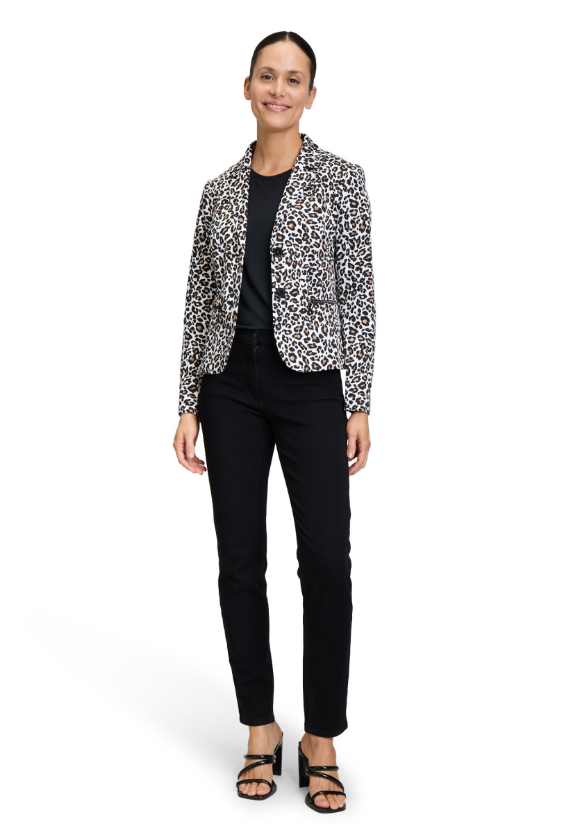 Passform: Tailliert | Gesamtlänge: 58 cm | Ärmellänge: Langarm | Kragenform: Reverskragen | Tasche: Reißverschluss | Verschluss: Knopf | Muster: Animal