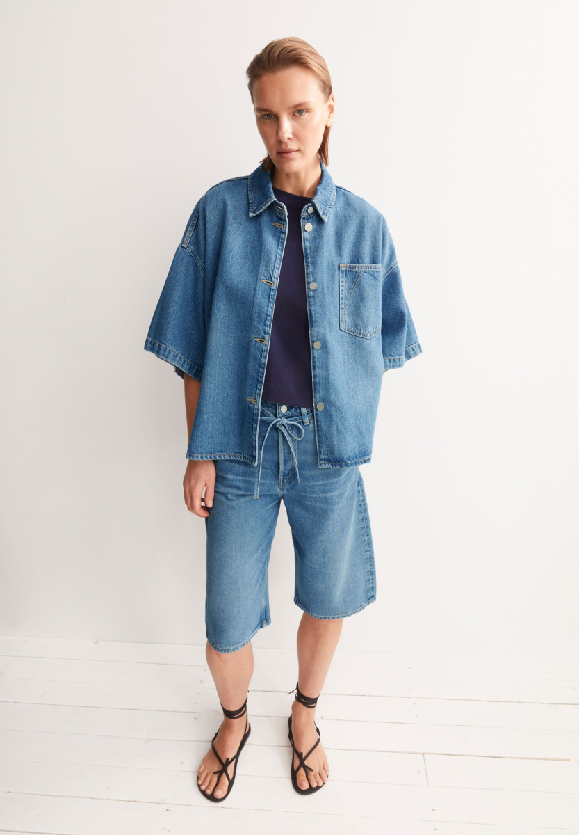 Hemdkragen | Knopfleiste | Brusttasche | Halbarm | Oversized | Denim