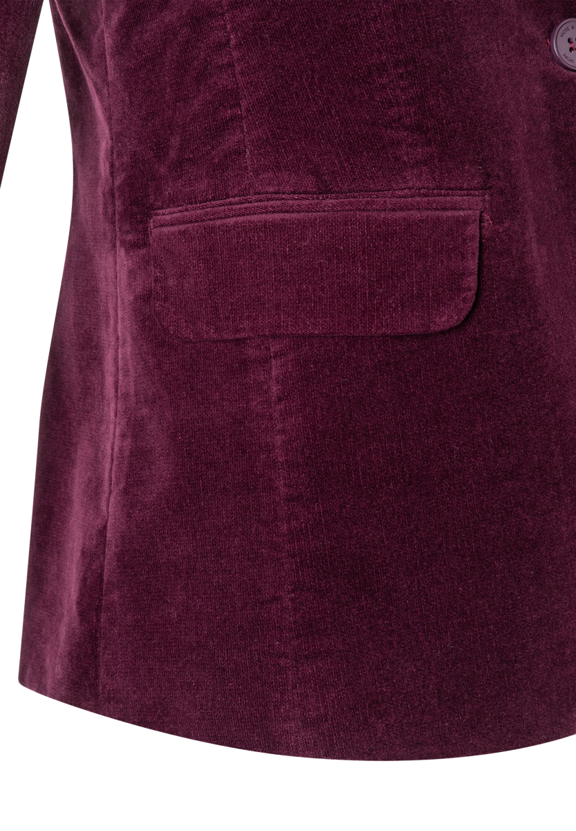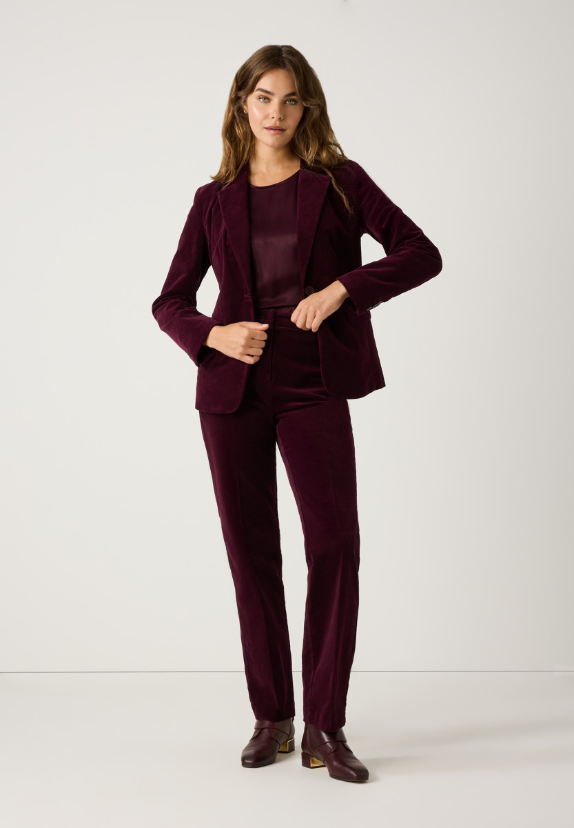Der moderne Samtblazer von MORE & MORE mit Ein-Knopf-Cut und langem Revers wird mit passender Hose zum super-stylishen Business-Outfit, lässt sich aber auch einzeln mit Jeans sehr lässig kombinieren.