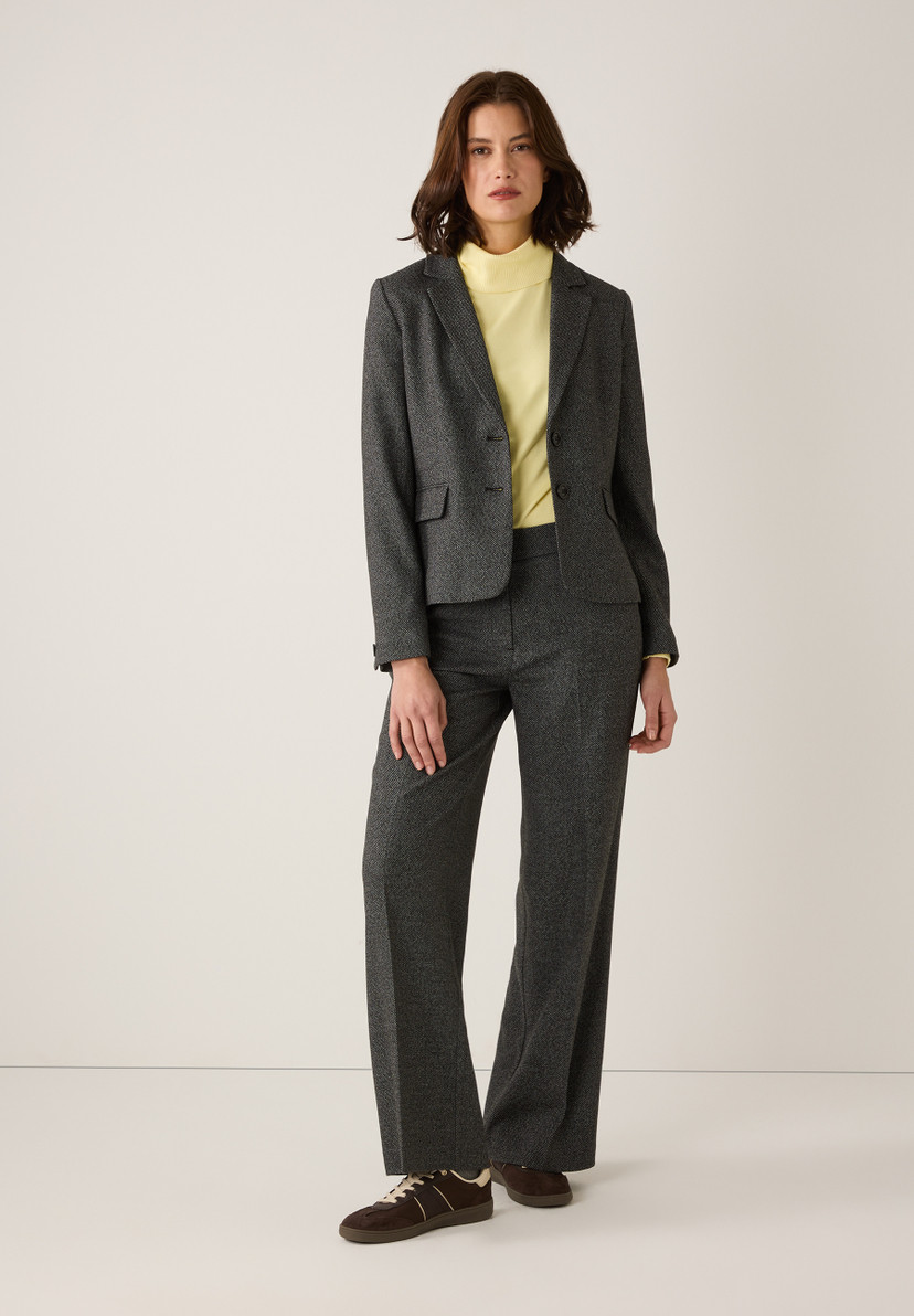 Kurzer, taillierter Shape mit 2 Knöpfen | Reverskragen | Pattentaschen | Lange Ärmel mit Knopf am Abschluss | Abgerundeter Saum | Gefüttert