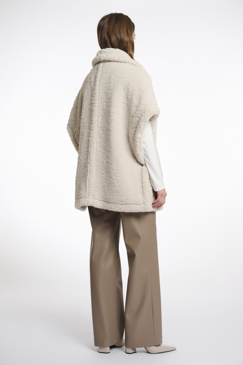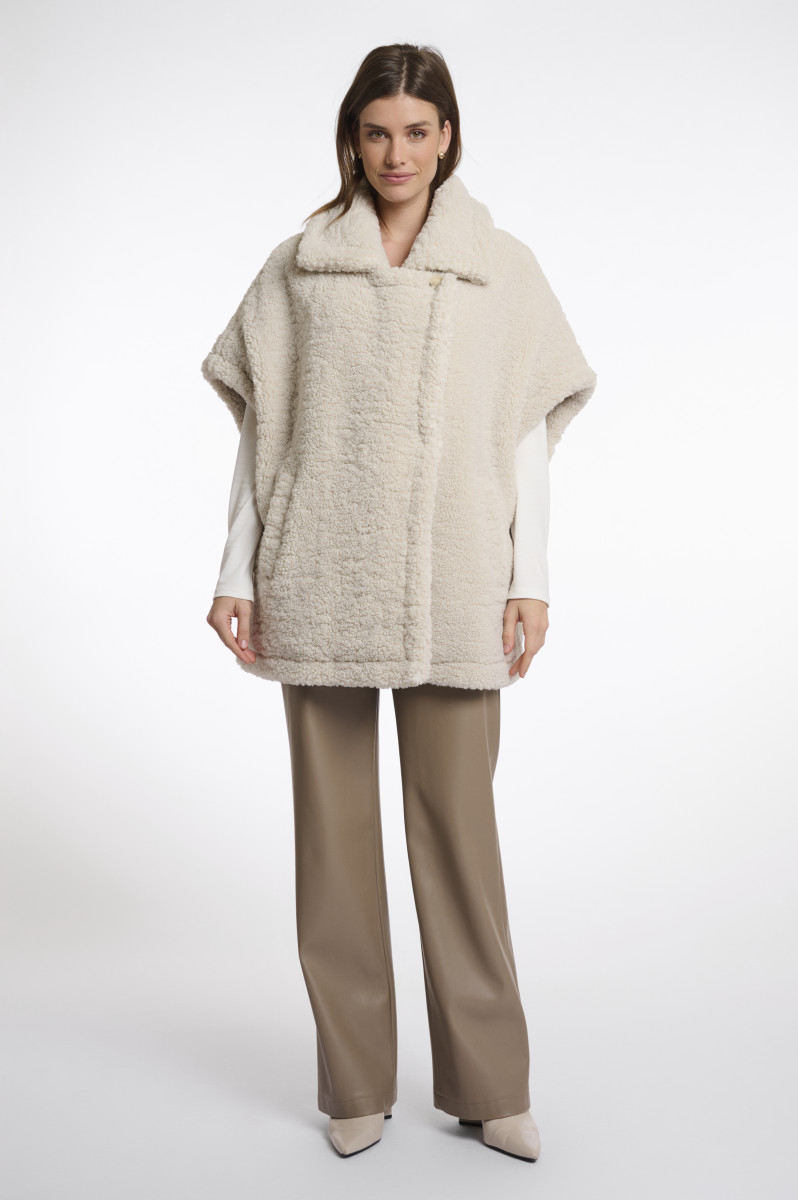 Dieses kurzärmelige Teddy-Cape in warmem Braunton ist der perfekte Mix aus Komfort und Stil. Die weiche Teddyfell-Optik, der lässige Oversized-Schnitt und der große Kragen machen es zum idealen Begleiter für kühle Herbst- und Wintertage. Ob über Longsleeve, Rollkragenpullover oder Hoodie – dieses Cape setzt ein modisches Statement.