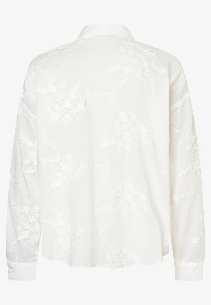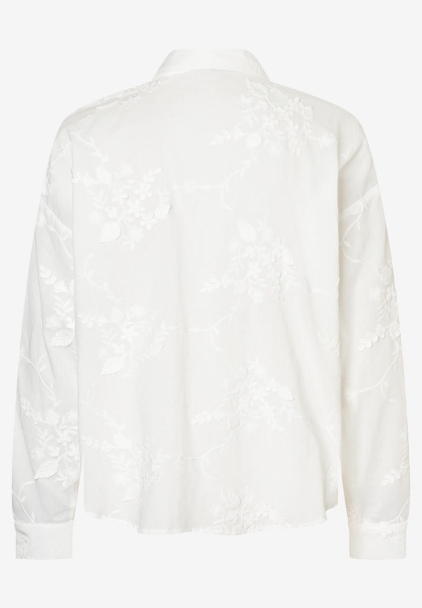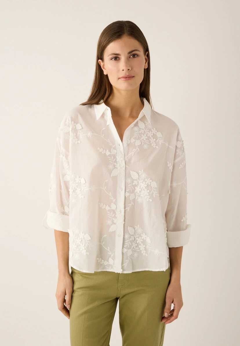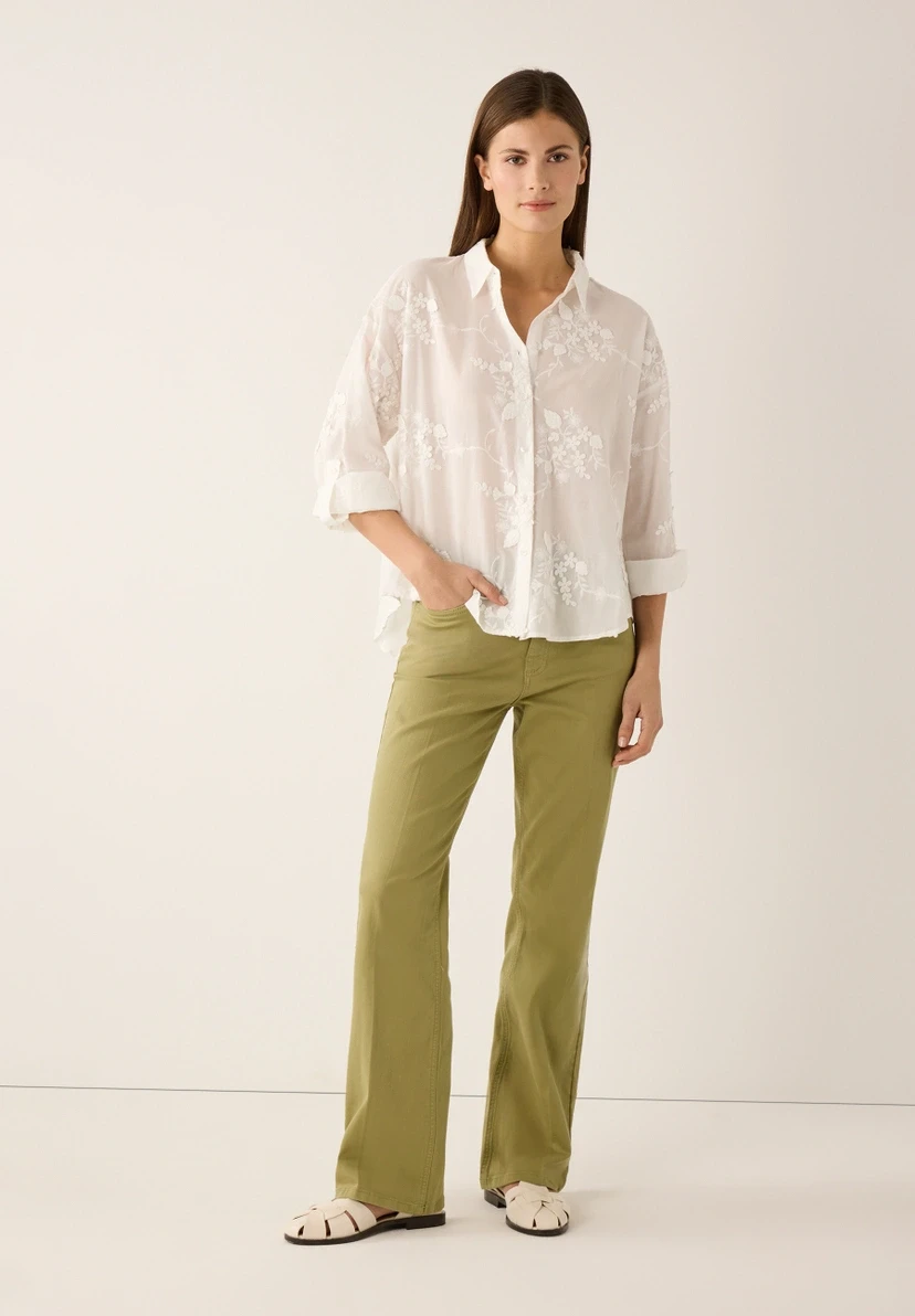 Lockere, blusige Form | Durchgehende Knopfleiste | Hemdblusenkragen | Lange Ärmel mit geknöpften Manschetten | Ärmel können mit Riegel und Knopf hochgekrempelt werden | Abgerundeter Saum
