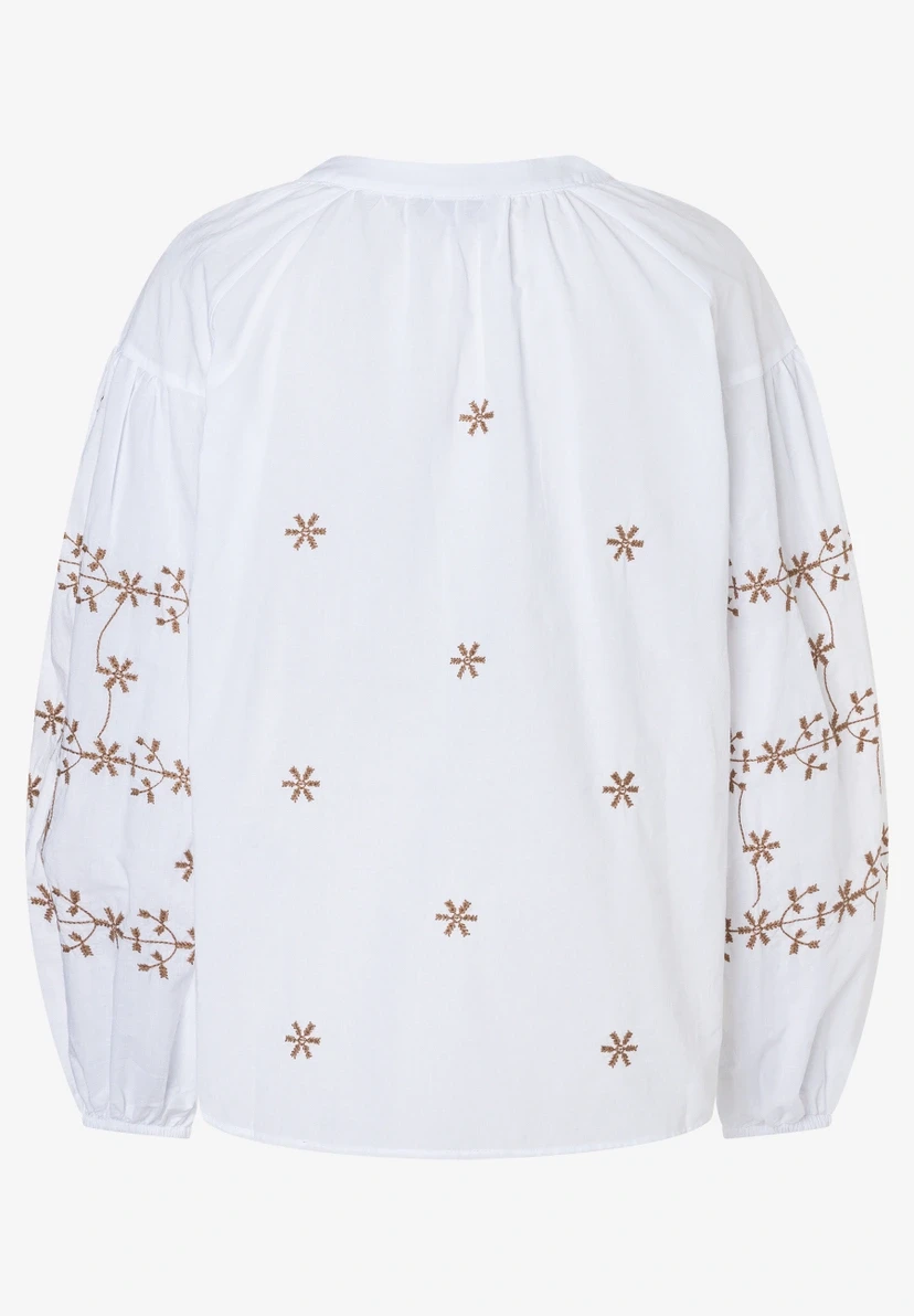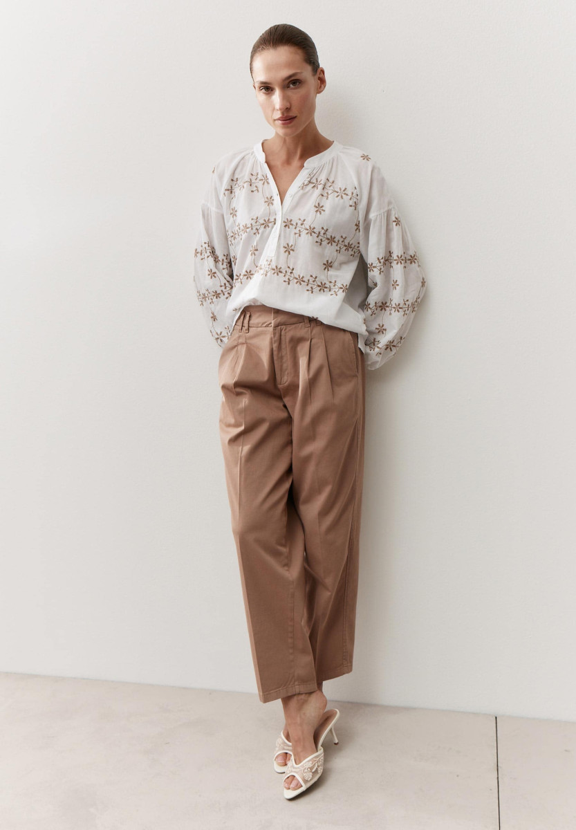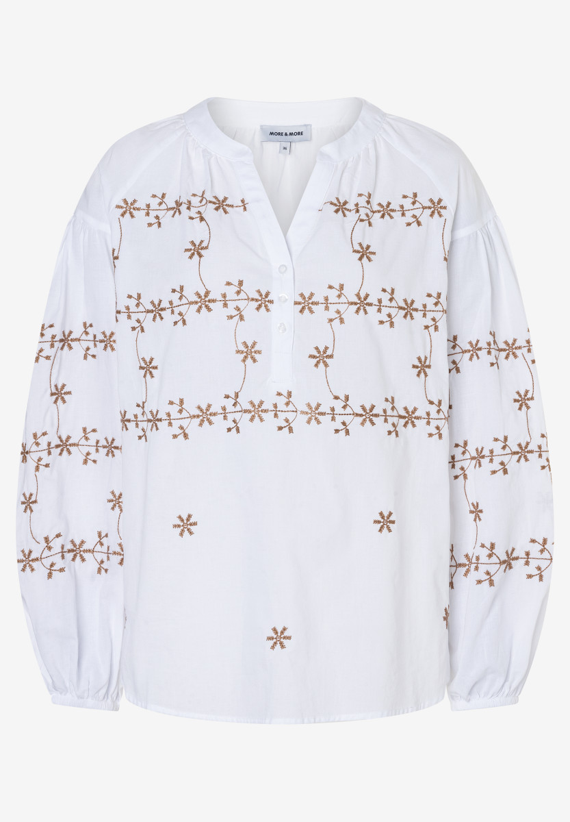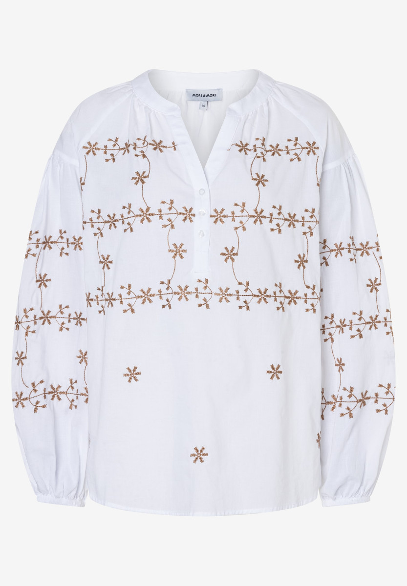 Die luftige Tunikabluse von MORE & MORE begeistert mit femininen Details und lässt sich easy stylen. Die lockere Passform und die leichte Baumwollqualität bieten ein angenehmes Tragegefühl, während die braune Stickerei der Bluse eine edle Optik verleiht - ein perfekter Begleiter für entspannte Sommer-Looks.