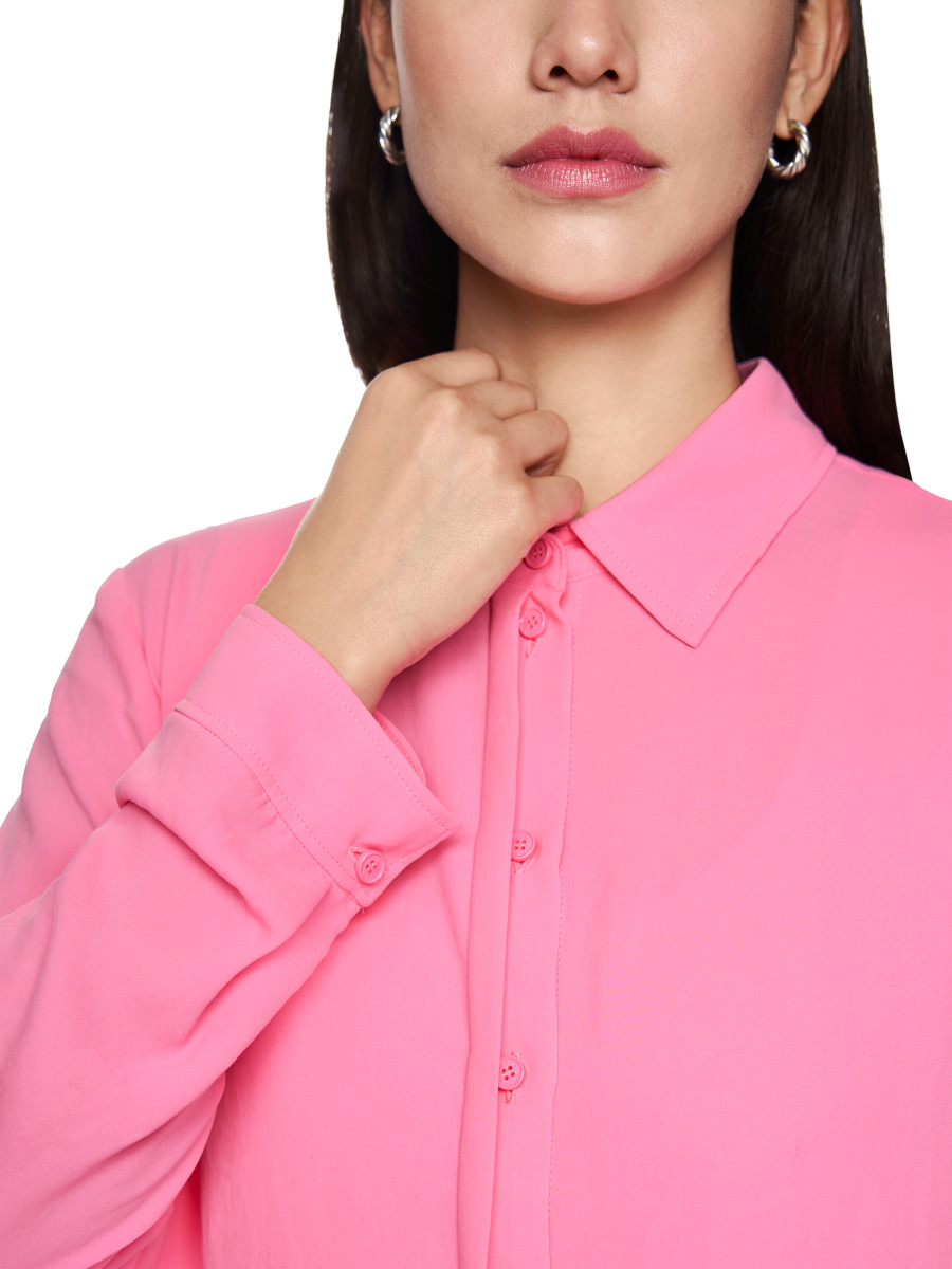 Stylische Business Bluse | Die fließende Bluse ist aus leichter Kunstfaser gefertigt und eignet sich perfekt fürs Büro sowie viele weitere Gelegenheiten. An der Knopfleiste ist als kleine Verzierung eine schmale Paspel eingearbeitet, während im Rückenteil eine Kellerfalte platziert ist. Locker geschnitten | Paspel an der Knopfleiste | Einknopfmanschetten | Kellerfalte | Das Model ist 179 cm groß und trägt N3/38.