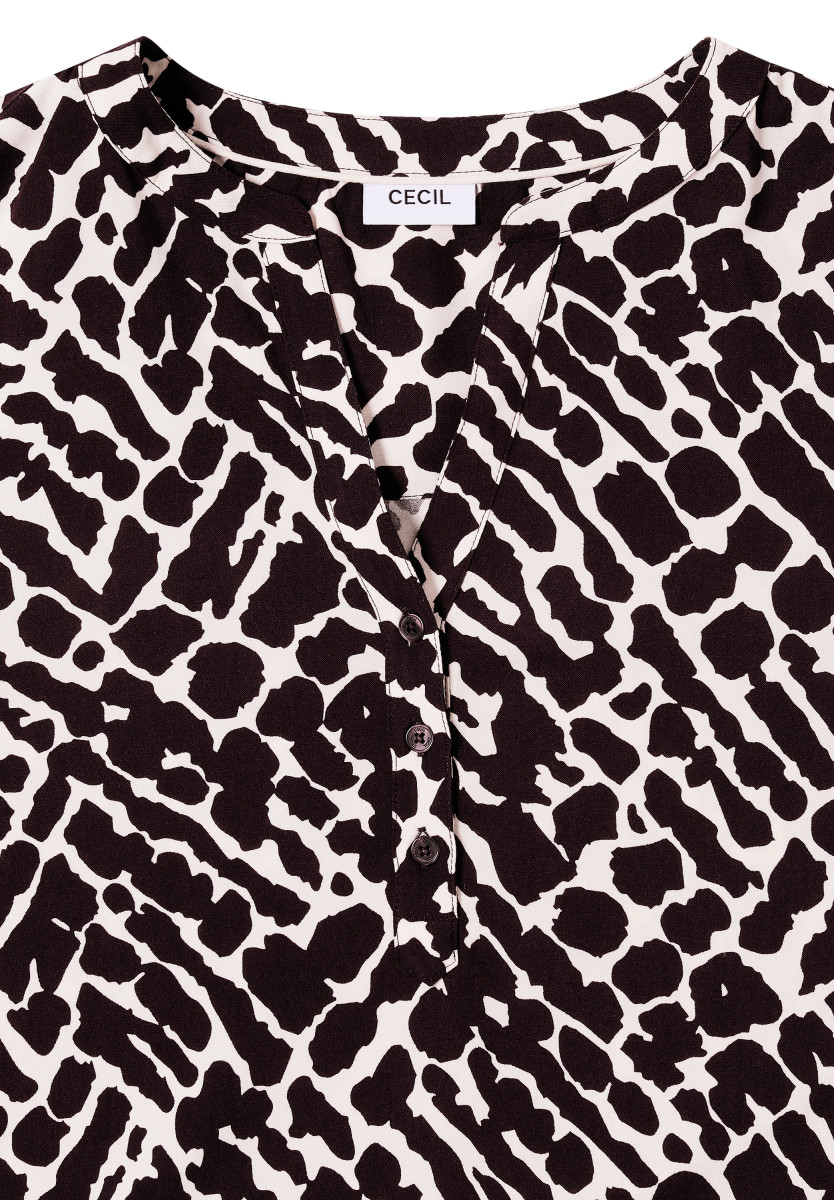Mit ihrem grafischen Muster und dem femininen Split Neck ist diese Bluse von CECIL für Damen ein stilvoller Hingucker. Elastische Bündchen sorgen für eine angenehme Passform, während die weiche Viskose fließend fällt. Ideal für modische Alltagskombinationen. Damenbluse Split Neck Langarm mit elastischen Bündchen Grafisches Muster Weiche Viskose Material: 100% Viskose