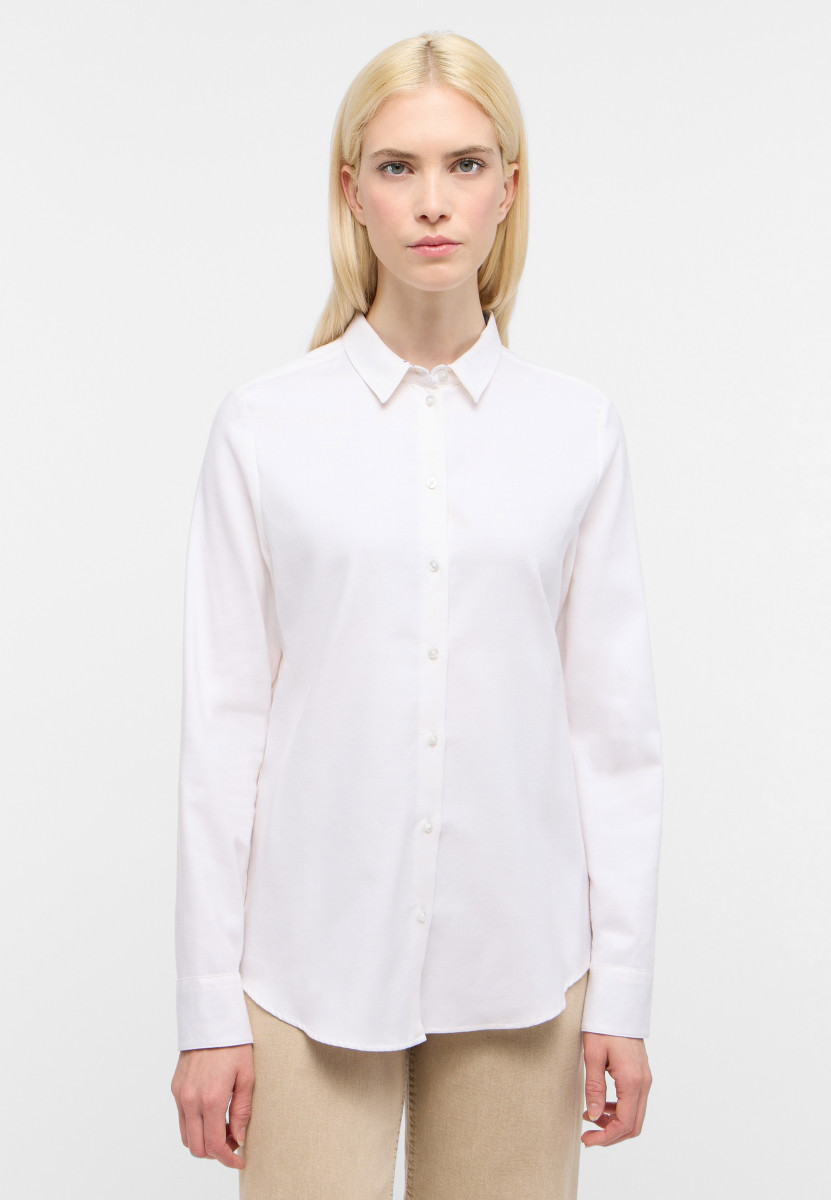 Ein absolutes Must-have für jede Garderobe: Dieses klassische weiße Hemd (oder Hemdbluse) vereint zeitlose Eleganz mit einem dezenten, modischen Detail. Die schlichte, gerade Passform und der traditionelle Kentkragen machen dieses Langarm-Hemd zum perfekten Business-Basic für das Büro und formelle Anlässe.
