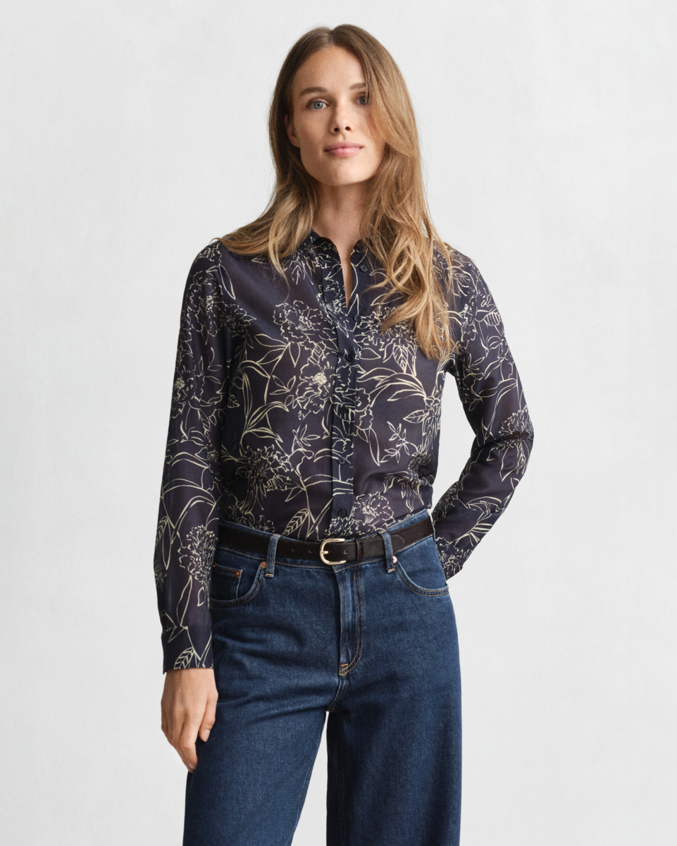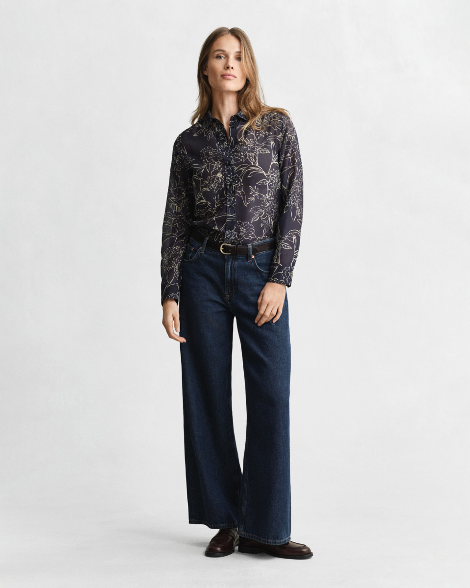 Regular Fit | Spitzer Kragen | Abgerundeter Saum | Knöpfe aus recyceltem Polyester