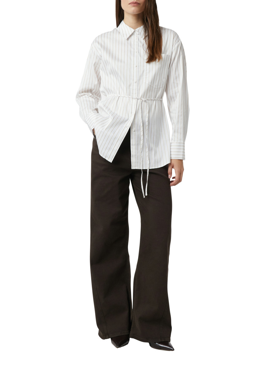 Diese Hemdbluse aus satiniertem Baumwollstretch vereint klassische Eleganz mit modernem Flair. Der Relaxed Fit und die verlängerte Länge sorgen für eine entspannte Silhouette, während das Bindeband in der Taille feminine Akzente setzt. Langarm mit Manschetten und Ärmelschlitz verleihen ihr einen hochwertigen Look. Die aufgesetzte Tasche und der abgerundete Saum runden das Design ab. Sie tragen sie lässig zum Casual-Outfit, elegant zur Party oder professionell im Business – vielseitig kombinierbar für jeden Anlass.