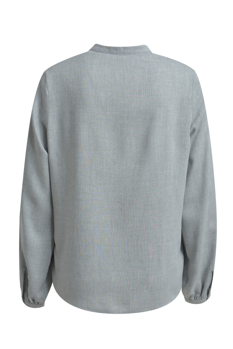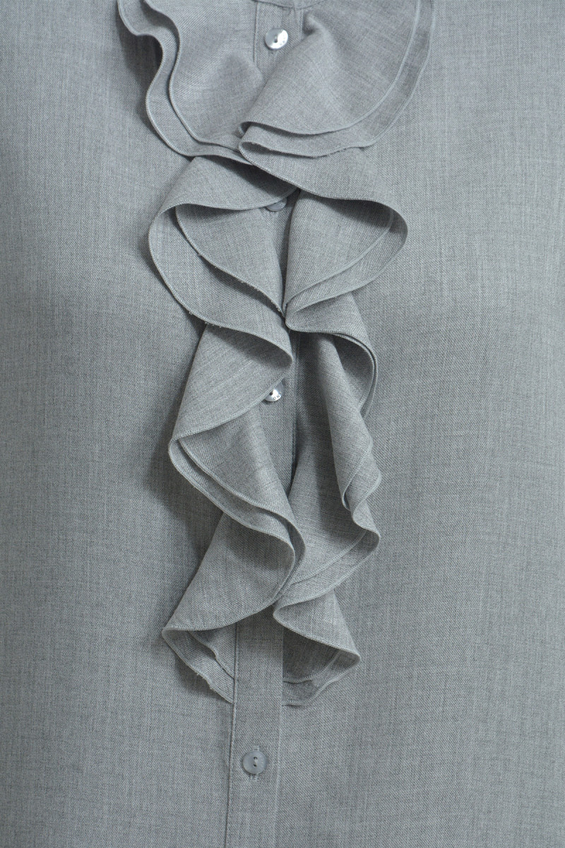 Klassische Bluse mit Volant-Detail an der Knopfleiste. Leicht fließender Fall und vielseitig kombinierbar für Alltag und Büro. Pflegehinweise siehe Produktetikett.