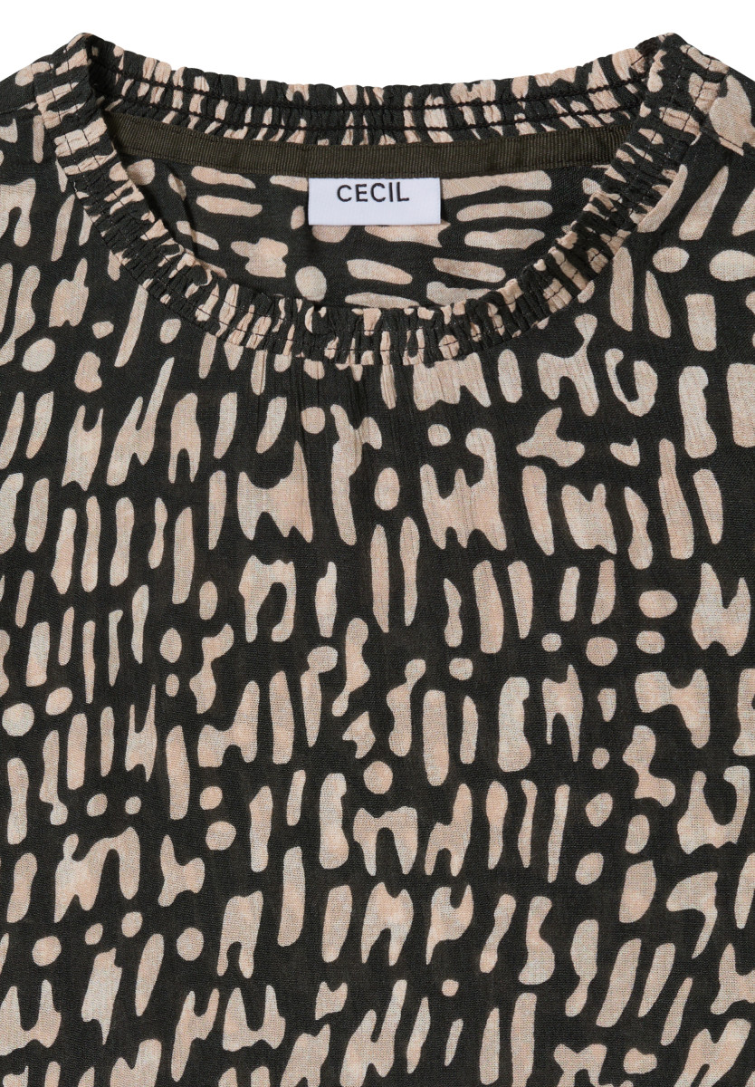Die gemusterte Bluse von CECIL für Damen kombiniert einen grafischen Print mit charmanten Details wie einem Smock-Ausschnitt und dem elastischen Saum. Der softe Viskosemix mit Stretchanteil sorgt für hohen Tragekomfort. Perfekt für stilvolle Casual-Styles. Damenbluse mit grafischem Muster Rundhals mit Smockstruktur Elastischer Saum Langarm mit Bündchen Viskosemix mit Stretchanteil Material: 100% Viskose