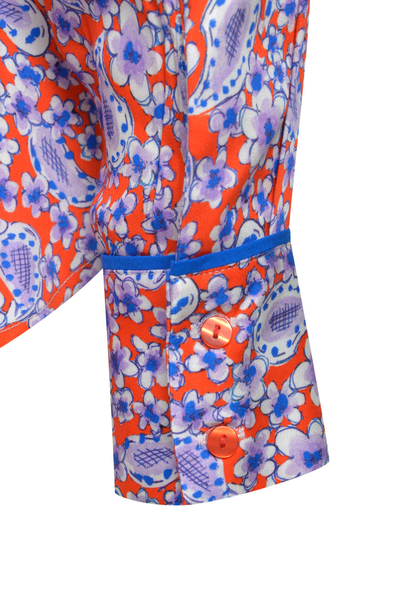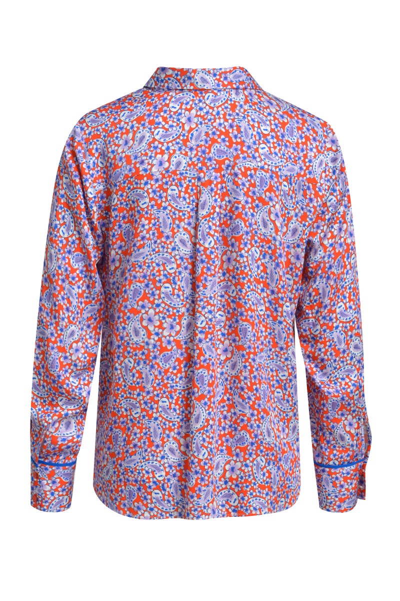 Bedruckte Bluse mit Hemdkragen für Damen, die eine feminine und moderne Optik bevorzugen. Der klassische Schnitt lässt sich vielseitig kombinieren und eignet sich sowohl für den Alltag als auch für das Büro.