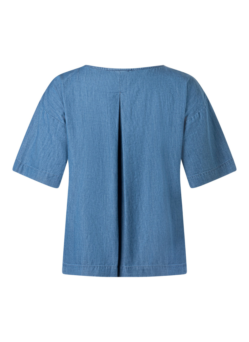 Diese stilvolle Kurzarmbluse aus dem Hause Maerz Muenchen vereint zeitloses Design mit einer entspannten Passform. Gefertigt aus einem hochwertigen Lyocell-Gewebe, besticht das Oberteil durch eine besonders weiche Haptik und einen fließenden Fall, der für ein angenehmes Tragegefühl an warmen Tagen sorgt. Die charakteristische Weboptik verleiht dem Kleidungsstück eine dezente Struktur und erinnert an klassische Denim-Styles, ohne dabei an Leichtigkeit einzubüßen.