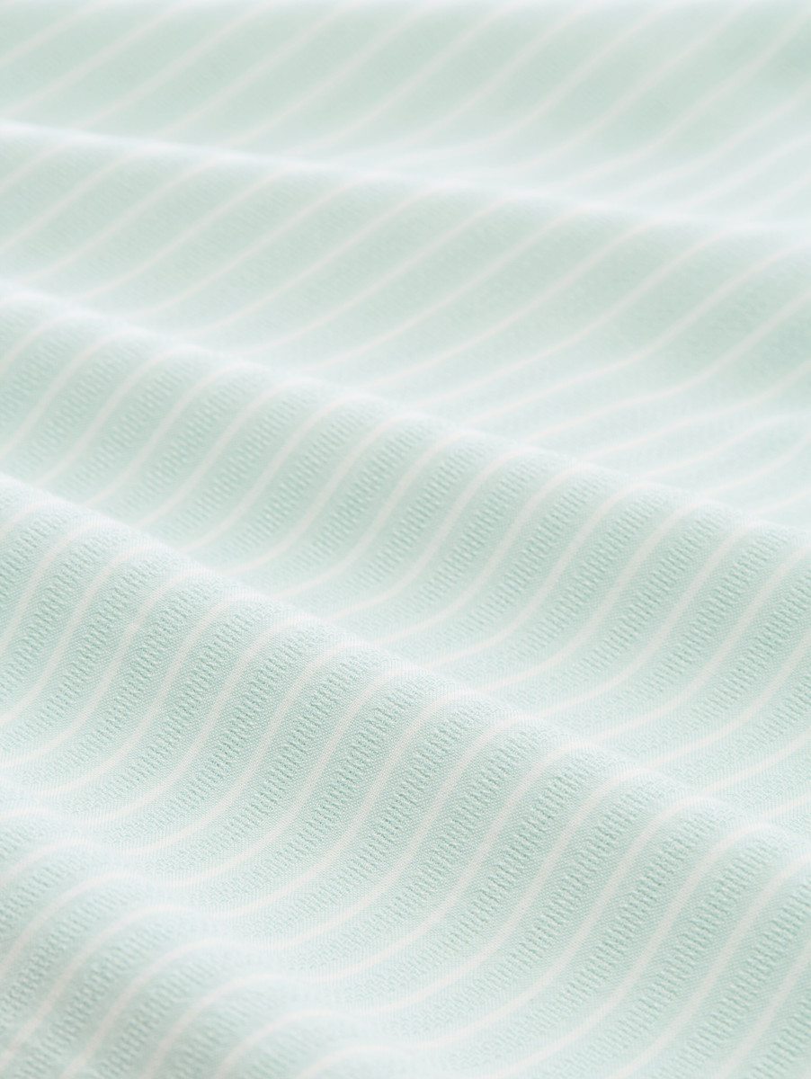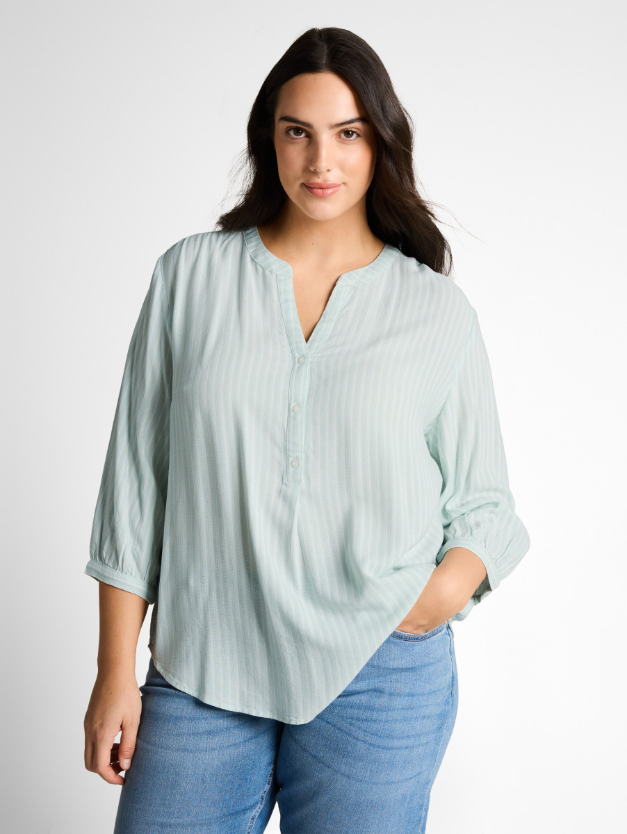 Gestreift | V-Ausschnitt | Knopfleiste | Viskose | Leichte Raffungen an den Schultern | Abgerundeter Saum